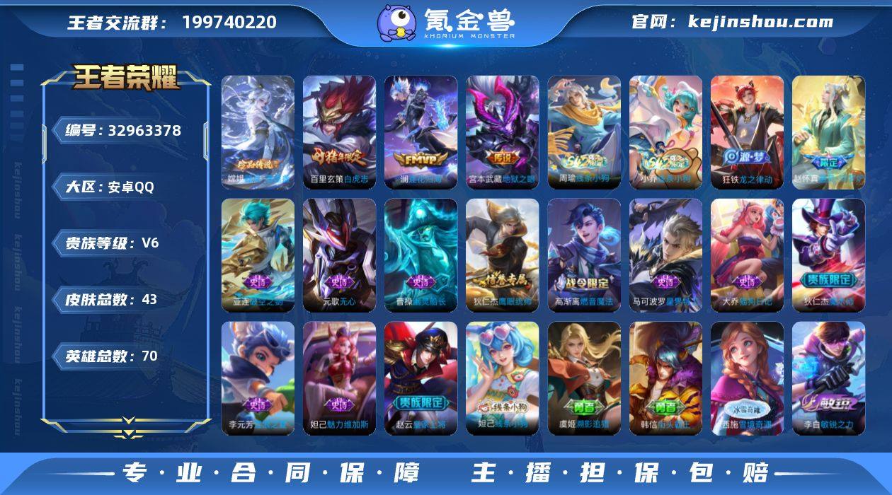 【XY1133】贵族6/皮肤43/传说4/史诗15/英雄70/敖隐全皮/伽罗沧流箭/器灵·落星盏/云缨神骥越千峰/澜逐花归海/白虎志/地狱之眼/阴阳师/皇家上将/无心/魔术师/海滩派对/高渐离燃音魔法/破空之剑/神迹守卫/线条小狗-周瑜/线条小狗-小乔/明世隐百晓客/龙之律动/器灵·浮梦炉/星界特工/鹰眼统帅/猫狗日记-大乔/逐浪之夏/幽灵船长/魅力维加斯/影百相守梦/线条小狗-妲己/溯影追猎/雪境奇遇-西施/太极少年/野性能量/敏锐之力/阿尔法小队/兔女郎/玩偶对对碰/忍·炎影/街头霸王/幸存者/灼热之刃/午夜歌剧院/芝加哥教父/激情绿茵