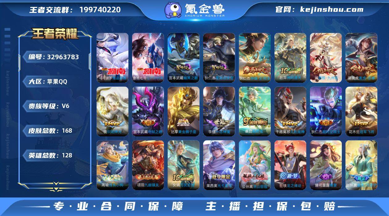 卖家说: 9500分金标李信,金标娜可露露,金标白起,金铲铲有2个神话小小英雄,3个小小英雄,要的速度来,可二次,因为距离上次改还没一年,3个月后就可以修改二次,还有宫本和狄仁杰的两个星传说