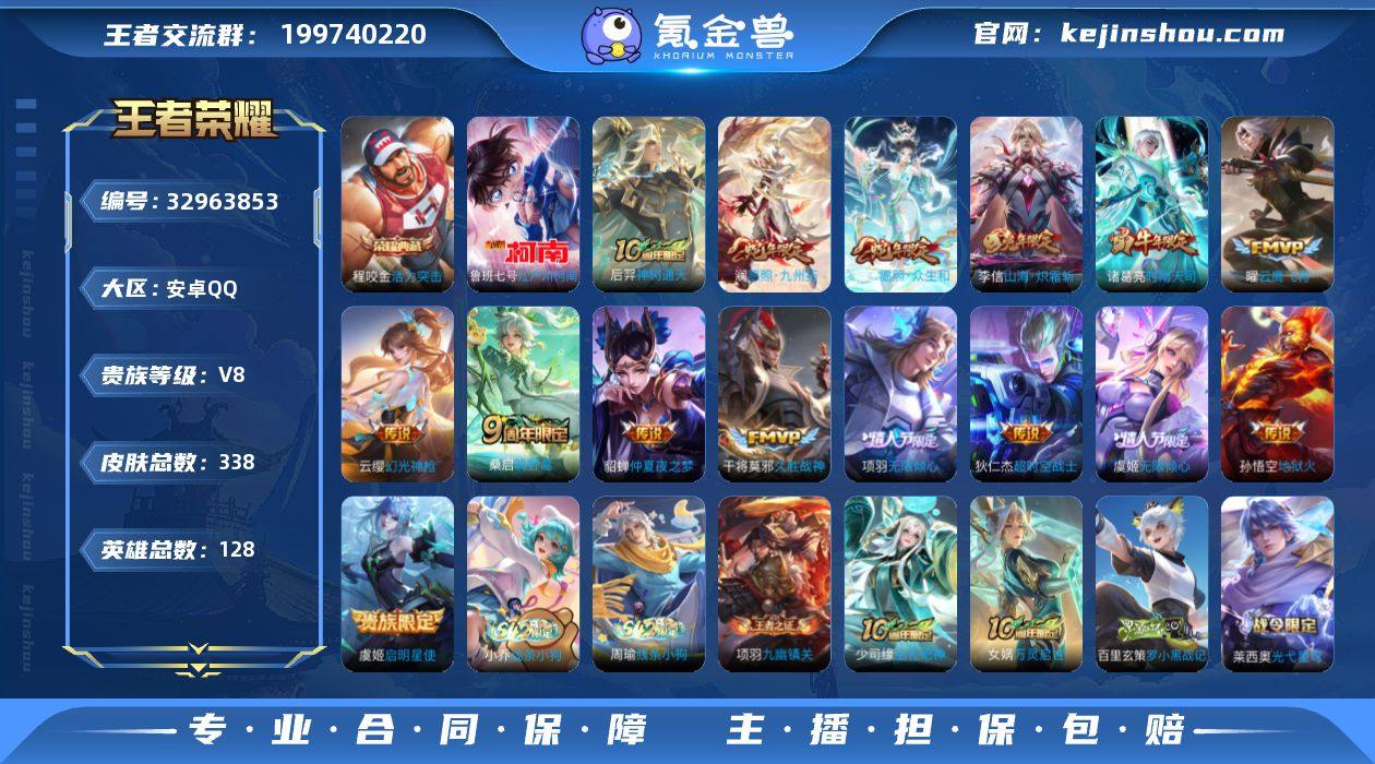 V8英雄128皮肤338 1典藏 15传说 118限定 1珍品传说 100史诗