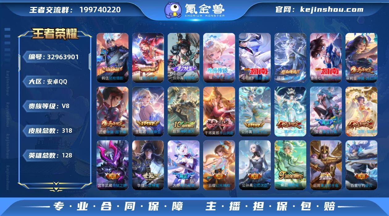 【王者荣耀】珍品无双0 典藏2 无双3 珍品传说4 传说20 史诗92 英雄128 皮肤318 贵族8级 荣耀典藏:弑枪猎影|拾光映像__无双皮肤:真我赫兹|离恨烟|雪境奇遇__珍品传说:江户川柯南|怪盗基德|器灵·落星盏|大耳狗之梦__传说皮肤:鸣野蒿|启明星使|地狱之眼|黄金射手座|一念神魔|记忆之芯|大乔-时之奇旅|落雪白狼|碎云|虞姬-无限倾心|朵莉亚-心动手记|幻光神枪|愿照·众生和|愿照·福禄聚|云诺千山|千山共赴|神树通天|长夜焕生|神骥·鸣幻洲|神骥·越千峰__稀有限定:至尊宝|朱雀志|猪悟能|梁祝|山海·碧波行|山海·玄木吟|百里守约-真我赫兹|大漠名商|地狱燃心|电玩高手|高山流水|古海寻踪|海滩派对|海盐诗旅|胡桃异想国|幻夜卜梦|皇家上将|火炮绅士|江河有灵|金庭之子|魔术师|奇幻香踪|千军破阵|擒涛扼浪|驱傩正仪|荣光圣徽|沙漠行僧|探海日志|天穹祈灯|玩趣恶龙|妄想食味|无心|五谷丰年|午后时光|纤云弄巧|星界游侠|阴阳师|暗隐猎兽者|缤纷独角兽|冰冠公主|冰雪圆舞曲|苍穹之光|乘风破浪|德古拉伯爵|地狱岩魂|电玩·爆裂旋风|鬼剑武藏|唤灵魅影|黄金分割率|箭羽风息|节奏热浪|金属风暴|乐园奇幻夜|吕布-末日机甲|魅力维加斯|梦奇-顽趣|女仆咖啡|偶像歌手|绅士熊喵|圣诞狂欢|圣诞恋歌|诗语...