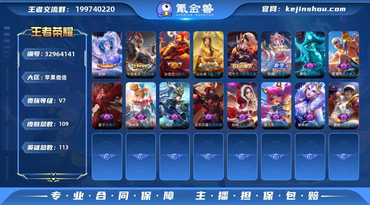[18221653]V7 1典藏 3传说 113英雄 109皮肤 可修改实名 男号