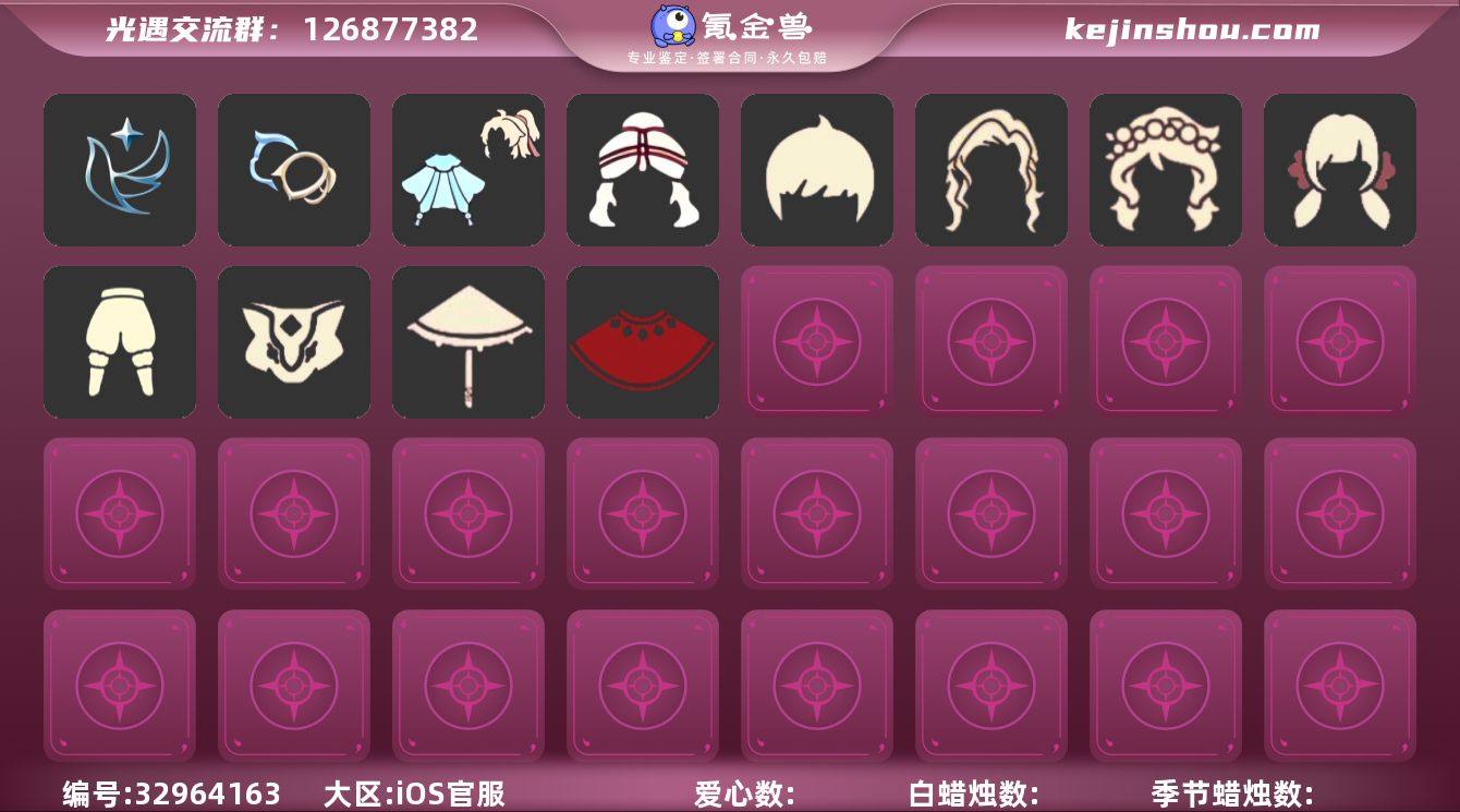 账号类型: 手机账号 季节已毕业: 青鸟季,双星季 完成地图: 无 礼包: 青衫落拓礼包 裤子: 白棉裤 面具: 黄鼠狼 发型: 正太,樱花,公主头,虚荣 头饰: 花环 斗篷: 红金 配饰: 雨伞 亮点: 重塑药水55,有织光季季卡
