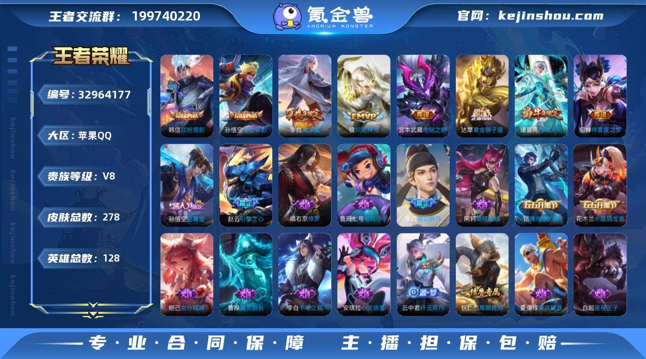 V8 2典藏 2珍品传说 12传说 128英雄 278皮肤 可修改实名 男号 【英雄全皮】孙权全皮,猪八戒全皮,大禹全皮 【稀有英雄】敖隐(小龙人),大司命,嬴政(始皇帝),韩信(韩跳跳),夏洛特(夏师傅),艾琳,橘右京(橘子),娜可露露(鸟人),不知火舞,赵云,金蝉(唐僧),戈娅 【荣耀水晶】弑枪猎影(韩信典藏),全息碎影(猴子典藏) 【珍品传说】江户川柯南,时之奇旅-孙策 【传说皮】典韦战鼓燎原,神树通天,黄金狮子座,仲夏夜之梦(大飞蛾),地狱之眼,炽阳神光 【珍宝阁皮】妄想食味,蔷薇恋人,玩趣恶龙 【赛季/战令皮】噬灭天穹(s37),古海寻踪(s33),星界游侠,海盐诗旅(s30),擒涛扼浪(s31),探海日志(s32),顽趣-梦奇,剑破天穹(s35),天穹祈灯(s34),青焰无极,苍威无极,天穹之誓(s36),蔡文姬夏日便利店,虞姬夏日便利店,暖冬·兔眠,妖精王(s5),炼金王(s6),凯尔特女王(s7),狰(s8),饕餮(s9),烛龙(s10),重明(s11),穷奇(s12),御狮(s13),御霄(s14),御旌(s15),御銮(s16),朔风刀(s17),混沌棋(s18),疑决卦(s19),醍醐杖(s20),原初探秘者(s21),万华元夜(s22),演武夺筹(s23),驱傩正仪(s24),千军破阵(s25),猎兽之王,白昼王子,蓝屏警告,神迹守卫-钟馗,赤莲之焰,西部大镖客-猪八戒,暗影游猎(游乐娃子),单词大作战,狂想玩偶喵,...