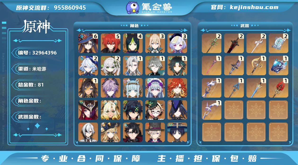 【原神】冒险等级:60,五星数量:48,五星角色:莫娜 * 6命,迪卢克 * 5命,提纳里 * 4命,七七 * 3命,琴 * 3命,芙宁娜 * 2命,纳西妲 * 2命,迪希雅 * 1命,那维莱特 * 1命,魈 * 1命,艾尔海森 * 1命,艾梅莉埃,基尼奇,希诺宁,恰斯卡,玛薇卡,钟离,梦见月瑞希,神里绫人,林尼,阿贝多,莱欧斯利,夜兰,娜维娅,赛诺,阿蕾奇诺,伊涅芙,流浪者,杜林,枫原万叶,甘雨,胡桃,克洛琳德,刻晴__五星武器:风鹰剑 * 2精,和璞鸢 * 2精,狼的末路 * 2精,四风原典 * 2精,万世流涌大典,裁断,黑蚀,阿莫斯之弓,苍古自由之誓,护摩之杖,息灾,若水,赦罪__四星角色:班尼特 * 6命,行秋 * 6命,九条裟罗 * 6命,香菱 * 6命,久岐忍 * 6命,鹿野院平藏 * 6命,珐露珊 * 6命,迪奥娜 * 6命,砂糖 * 6命,瑶瑶 * 6命,坎蒂丝 * 6命,多莉 * 6命,柯莱 * 6命,芭芭拉 * 6命,欧洛伦 * 6命,云堇 * 6命,早柚 * 6命,托马 * 6命,五郎 * 6命,烟绯 * 6命,重云 * 6命,辛焱 * 6命,诺艾尔 * 6命,罗莎莉亚 * 6命,菲谢尔 * 6命,北斗 * 6命,琳妮特 * 6命,夏洛蒂 * 6命,夏沃蕾 * 6命,嘉明 * 6命,赛索斯 * 6命,莱依拉 * 5命,卡维 * 5命,雷泽 * 5命,菲米尼 * 5命,绮良良 * 4命,米卡 * 3命,卡齐娜 * 2命,凝光 * 2命,蓝砚 * 2命,伊法 * 2命,伊安珊 * 2命,...