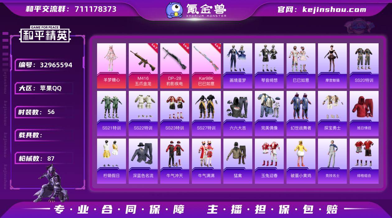 苹果 手Q-2粉装-3特效枪-0载具-1粉色飞行器-25114热力值-4王牌印记-56套装-87枪皮 【粉色套装】:角色-羊梦糖心,角色-霁蓝缠春 【粉色枪皮等级】:M416-五爪金龙(七级),Kar98K-巳巳如意(五级),DP-28-豹影疾电(五级) 【粉色枪皮】:M416-五爪金龙,Kar98K-巳巳如意,DP-28-豹影疾电 【粉色飞行器】:炫彩糖果飞行器 【粉色降落伞】:翩跹演武降落伞,临安公主降落伞,炫彩糖果降落伞,霁蓝缠春降落伞 【稀有套装】:套装-巳巳如意,套装-炫彩糖果,角色-摩登魅猫,套装-画境星梦,套装-琴音绮想 【稀有枪皮】:AKM-破晓战魂,AKM-缤纷海域,M16A4-幻世战舞者,SCAR-L-炫彩节奏,SCAR-L-玉兔迎春,M416-红色方程式,GROZA-田园牧歌,M762-天降萌叽,Mk47-炫光之旅,AC-VAL-天降萌叽,AC-VAL-彩虹甜喵,蜜獾-天降萌叽,蜜獾-娇憨猪猪,ACE32-画境星梦,UZI-啾咪啾咪,UZI-天降萌叽,UZI-娇憨猪猪,UZI-影袭,UMP45-涂山之恋,Vector-彩虹符号,Vector-田园牧歌,MP5K-画境星梦,P90-巳巳如意,Kar98K-王子的夏天,M24-影袭,VSS-田园牧歌,Mini14-耀粉歌者,SLR-娇憨猪猪,MK20-H-墨染幽兰,M1加兰德-画境星梦,S1897-炫彩节奏,S12K-娇憨猪猪,S12K-幻世战舞者,AA12-G-画境...