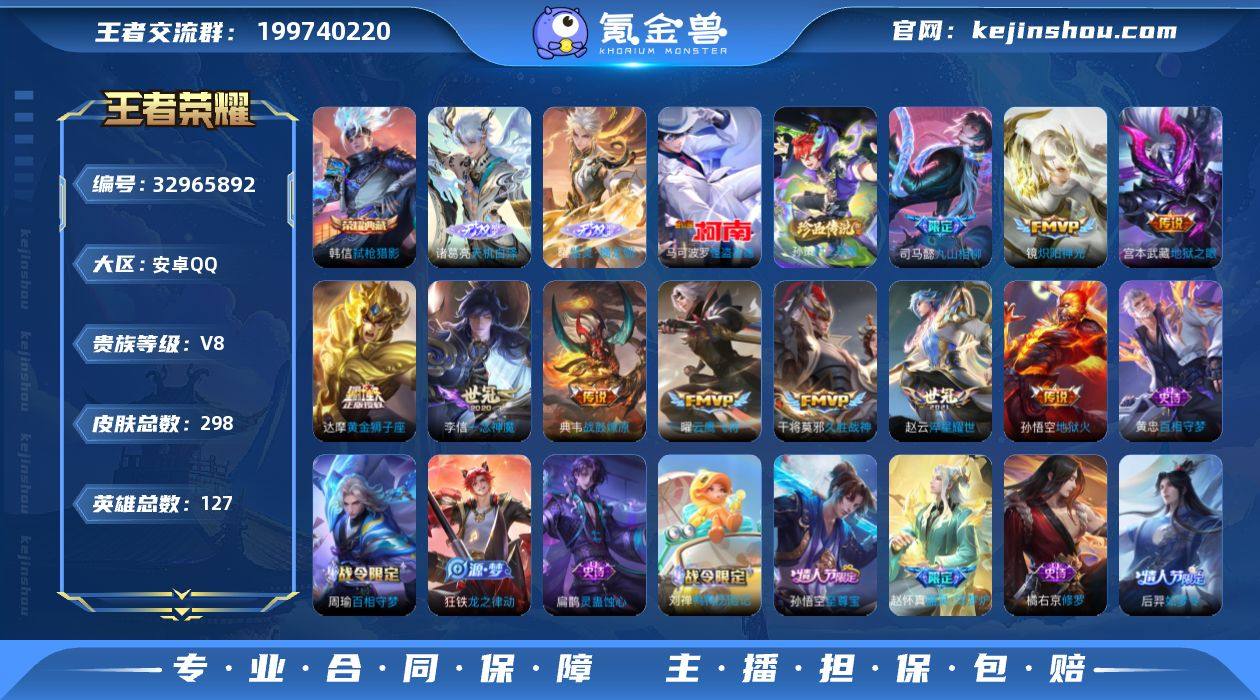 猎影·颠倒童话魔镜·天机白泽·器灵螭龙剑·怪盗基德·时之奇旅·愿照九州拓·纵目迁山·九山相柳·淬星耀世·一念神魔·千山共赴·无二次包过】w22482-安卓Q-127英雄-298皮肤-0王者印记-300铭文-贵族积分5w【贵族8】【2典藏·2无双·2珍品·16传说·1天幕·10按键】【因赛季更新游戏段付以上号为准!】 【英雄全皮】:司马懿全皮,孙权全皮,敖隐全皮,空空儿全皮,影全皮 【荣耀典藏】:韩信弑枪猎影,安琪拉颠倒童话魔镜 【无双皮肤】:诸葛亮天机白泽,曜器灵螭龙剑 【珍品传说】:孙策时之奇旅,马可波罗怪盗基德 【天幕】:共赏芳华天幕 【传说皮肤】:杨戬纵目迁山,后羿神树通天,干将莫邪千山共赴,司马懿九山相柳,澜愿照九州拓,桑启鸣野蒿,典韦战鼓燎原,赵云淬星耀世,镜炽阳神光,虞姬启明星使,曜云鹰飞将,李信一念神魔,干将莫邪久胜战神,达摩黄金狮子座,宫本武藏地狱之眼,孙悟空地狱火 【限定皮肤】:姜子牙天穹之誓,狄仁杰阴阳师,赵云皇家上将,墨子神迹守卫,高渐离玩趣恶龙,阿轲迷踪丽影,白起夜都怪侠,吕布御风骁将,元歌云间偶戏,元歌无心,马可波罗暗影游猎,狄仁杰魔术师,狄仁杰万华元夜,达摩沙漠行僧,项羽海滩派对,项羽霸王别姬,老夫子航海奇遇记,程...
