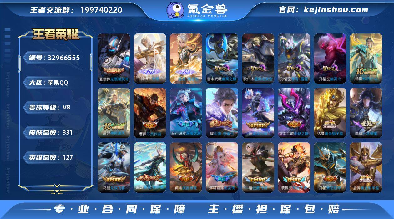 【WZ182043】苹果Q-V8-永恒钻石III段位-127英雄-331皮肤-1典藏皮肤-3无双-27传说-90史诗【英雄全皮】:孙权全皮,猪八戒全皮,敖隐全皮,蒙恬全皮【荣耀典藏】:夏侯惇无限飓风号【无双皮肤】:李信问心剑,孙悟空无相,曜器灵螭龙剑【传说皮肤】:云缨神骥越千峰,杨戬纵目迁山,后羿神树通天,曹操万灵伏威,裴擒虎祥瑞亨通,嬴政玄雷天君,典韦战鼓燎原,赵云乘龙铭钟鼎,澜逐花归海,曜山海苍雷引,娜可露露前尘镜,马可波罗深海之息,马超无双飞将,孙策末日机甲,孙尚香异界灵契,赵云淬星耀世,铠绛天战甲,虞姬启明星使,孙悟空零号赤焰,曜云鹰飞将,李信一念神魔,张良黄金白羊座,达摩黄金狮子座,后羿黄金射手座,宫本武藏地狱之眼,孙悟空地狱火,狄仁杰超时空战士【限定皮肤】:暃埋骨钱,姜子牙天穹之誓,李白谪仙醉月,狄仁杰阴阳师,赵云皇家上将,墨子神迹守卫,嬴政优雅恋人,孙尚香异界灵契,庄周高山流水,钟无艳超时空战士,白起夜都怪侠,芈月幻夜卜梦,元歌云间偶戏,元歌无心,夏侯惇朔风刀,甄姬落雪兰心,典韦岱宗,马可波罗暗影游猎,马可波罗深海之息,狄仁杰魔术师,狄仁杰万华元夜,达摩星际陆战队,达摩沙漠行僧,项羽海滩派对,老夫子醍醐杖...