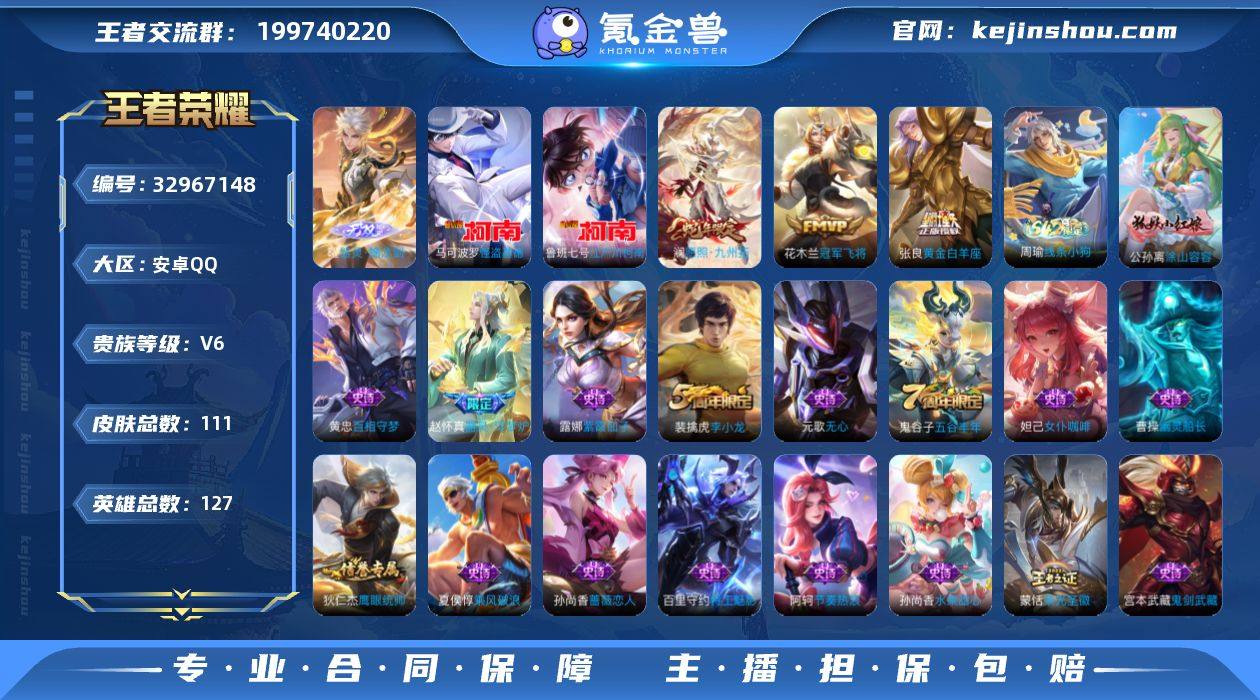 【基德柯南 1无双2珍品3传说1金标 可秒换绑】安卓QQ-127英雄-111皮肤【无双皮肤】器灵·螭龙剑【珍品传说】怪盗基德 江户川柯南【传说皮肤】愿照·九州拓 冠军飞将 黄金白羊座【史诗皮肤】荣光圣徽 百相守梦 器灵·浮梦炉 涂山容容 幽灵船长 女仆咖啡 魔术师 鹰眼统帅 圣诞恋歌 鬼剑武藏 地狱岩魂 天才门将 紫霞仙子 金属风暴 李小龙 水果甜心 蔷薇恋人 乘风破浪 皇家上将 无心 五谷丰年 匿光启智者 节奏热浪 特工魅影【勇者皮肤】径山谋武 玫蓝誓约 浪漫序章 虚灵犬护 线条小狗 西部游侠 剑破天穹 探海日志 云中旅人 金庭之子 破局者 赤刃凌霄 海盐诗旅 灵野札记 时空谍影 逆浪荇歌 雾都夜雨 小满鸭 命运加冕 布丁狗之约 踏浪烽翎 归虚梦演 金福满堂 灵卦秘语 景韶洛都 万象初新 幻乐之宴 原初探秘者 兔女郎 醍醐杖 万事如意 幻想奇妙夜 朔风刀 海滩派对 丁香结 死亡骑士 混沌棋 五福同心 忍·炎影 花好人间 归虚梦演 擒涛扼浪 大漠名商 西部大镖客 胡桃狂想曲 化身博士 沙漠行僧 阴阳师 万华元夜 营地ID:1630058371