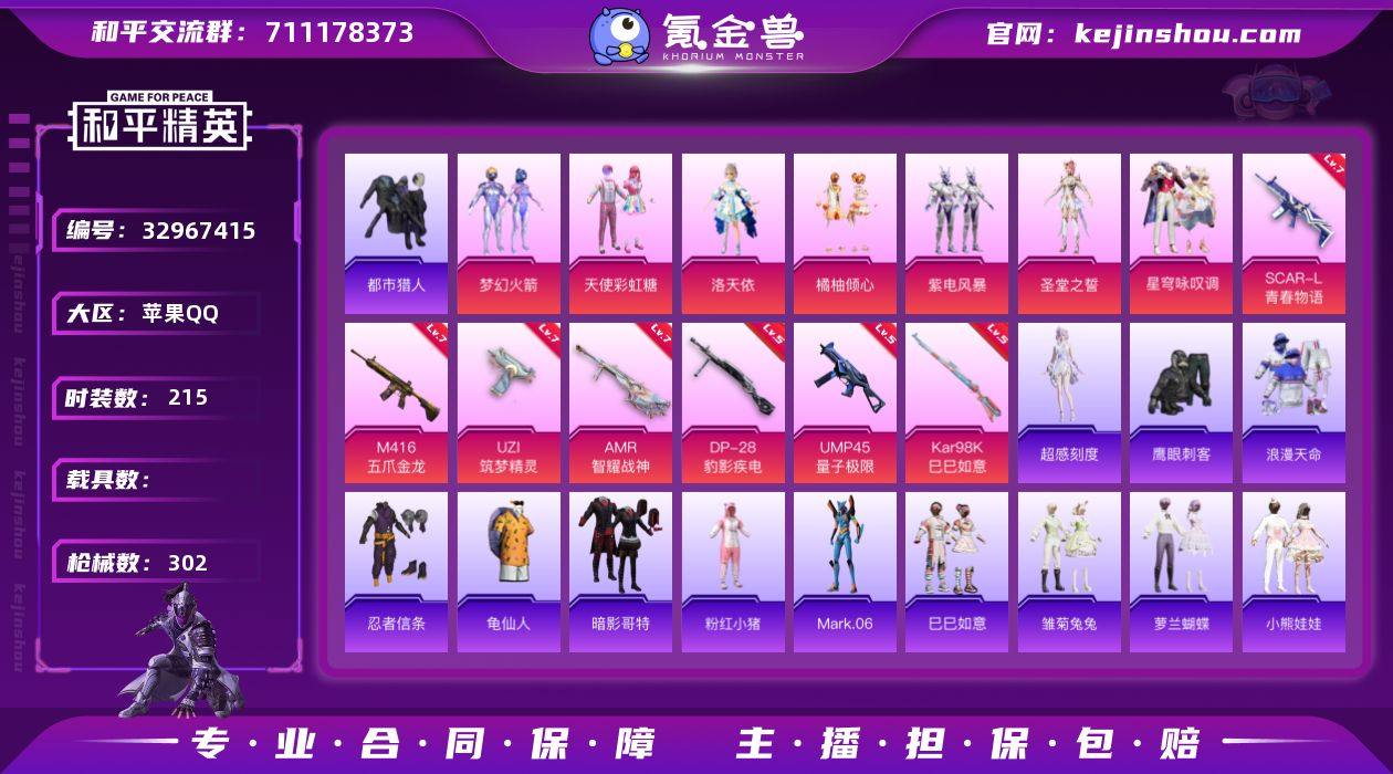 苹果 手Q-7粉装-9特效枪-0载具-2粉色飞行器-88036热力值-17王牌印记-215套装-302枪皮 【热门品类】:粉装-梦幻火箭,套装-浪漫天命,套装-都市猎人,套装-忍者信条,套装-龟仙人,套装-暗影哥特,套装-粉红小猪,角色-Mark.06 【粉色套装】:粉装-天使彩虹糖,粉装-梦幻火箭,角色-洛天依,粉装-橘柚倾心,粉装-紫电风暴,角色-圣堂之誓,粉装-星穹咏叹调 【粉色枪皮等级】:SCAR-L-青春物语(七级),M416-五爪金龙(七级),UZI-筑梦精灵(七级),UMP45-量子极限(五级),Kar98K-巳巳如意(五级),Mk14-福马献瑞(五级),AMR-智耀战神(七级),AA12-G-萌骑幻想(五级),DP-28-豹影疾电(五级) 【粉色枪皮】:SCAR-L-青春物语,M416-五爪金龙,UZI-筑梦精灵,UMP45-量子极限,Kar98K-巳巳如意,Mk14-福马献瑞,AMR-智耀战神,AA12-G-萌骑幻想,DP-28-豹影疾电 【粉色飞行器】:炫彩糖果飞行器,纯梦嫁纱飞行翼 【粉色降落伞】:绝对恒星降落伞,快乐主宰降落伞,幻影战神降落伞,甜心宝贝降落伞,梦幻火箭降落伞,锦绣火鲤降落伞,暗夜玫瑰降落伞,绿意幻情降落伞,筑梦精灵降落伞,炙焰牛王降落伞,暗夜鎏金降落伞,星穹咏叹调降落伞,极意拳锋降落伞,炫彩糖果降落伞,辉云木星降落伞...