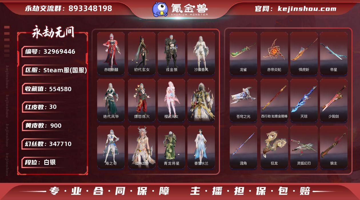 多个优质红武 红衣皮 多款联动 泳装 龙之道 多款变身器 附带steam游戏库 荒野大镖客2 GTA5 看门狗2 看门狗军团 黑神话悟空 极限竞速:地平线4 赛博朋克2077 刺客信条:起源 方舟:生存进化 森林之子等多款好游 账号可改绑一切绑定