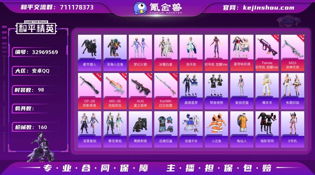 安卓 【小号 粉装-梦幻火箭/套装-都市猎人/套装-深海小丑鱼/套装-暗影哥特/蓝螳螂/AUG-星之彼岸(四级)/Famas-初号机 觉醒Ver.(七级)/梦幻火箭背包】手Q-5粉装-7特效枪-0载具-1粉色飞行器-42095热力值-3王牌印记-98套装-160枪皮 【热门品类】:粉装-梦幻火箭,套装-浪漫天命,套装-都市猎人,套装-深海小丑鱼,套装-小丑鱼,套装-龟仙人,套装-暗影哥特,角色-8号机,角色-Mark.06 【粉色套装】:粉装-梦幻火箭,粉装-冰霜白皇,角色-洛天依,角色-初号机 觉醒Ver.,粉装-星穹咏叹调 【粉色枪皮等级】:AUG-星之彼岸(四级),Famas-初号机 觉醒Ver.(七级),Kar98K-巳巳如意(一级),Mk14-福马献瑞(四级),DP-28-豹影疾电(五级),MG3-洛神天依(六级),MG-36-沧焰双生(五级) 【粉色枪皮】:AUG-星之彼岸,Famas-初号机 觉醒Ver.,Kar98K-巳巳如意,Mk14-福马献瑞,DP-28-豹影疾电,MG3-洛神天依,MG-36-沧焰双生 【粉色飞行器】:炫彩糖果飞行器 【粉色降落伞】:绝对恒星降落伞,星之彼岸降落伞,洛神天依降落伞,初号机 觉醒Ver.降落伞,魔法神域降落伞,星穹咏叹调降落伞,异瞳寒姬降落伞,极意拳锋降落伞,炫彩糖果降落伞 【稀有套装】:套装-龟仙人,套装-雪国风尚,套装-炫彩...