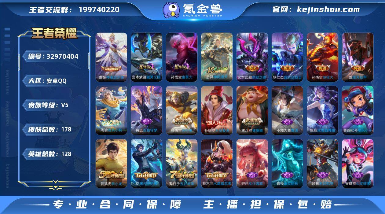 【退游出号】王者荣耀Q区账号,一手号,已成年,信誉等级7级。 英雄127,皮肤150+(含虞姬荣耀典藏皮肤神鉴启示录、周年限定皮肤若干) 因个人原因退游,心理价500元,可小刀。