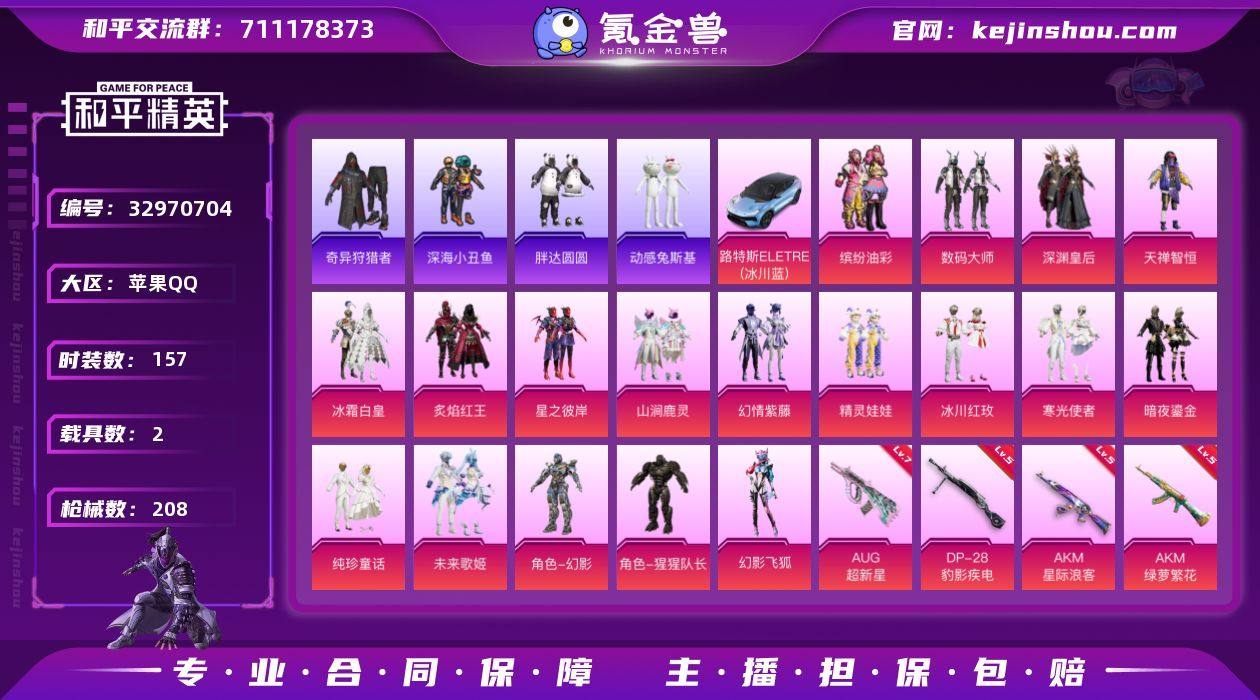 苹果 手Q-19粉装-13特效枪-2载具-2粉色飞行器-75649热力值-12王牌印记-157套装-208枪皮 【热门品类】:粉装-缤纷油彩,套装-浪漫天命,套装-深海小丑鱼,套装-小丑鱼,套装-奇异狩猎者,套装-胖达圆圆,套装-动感兔斯基人偶服,角色-2B战斗服款,角色-2P战斗服款,套装-龟仙人,套装-暗影哥特,套装-粉红小猪 【粉色套装】:粉装-数码大师,粉装-深渊皇后,粉装-缤纷油彩,粉装-天禅智恒,粉装-冰霜白皇,粉装-炙焰红王,粉装-星之彼岸,粉装-山涧鹿灵,粉装-幻情紫藤,粉装-精灵娃娃,粉装-冰川红玫,粉装-寒光使者,粉装-暗夜鎏金,粉装-纯珍童话,粉装-未来歌姬,角色-幻影,角色-猩猩队长,粉装-幻影飞狐,角色-虹云熊熊 【粉色枪皮等级】:AKM-星际浪客(五级),AKM-绿萝繁花(五级),SCAR-L-童趣迷兔(四级),M416-五爪金龙(四级),AUG-超新星(七级),ACE32-萌骑漫游(二级),UMP45-恐龙拽拽(二级),P90-能量风暴(五级),Kar98K-未来歌姬(一级),Kar98K-巳巳如意(五级),Mk14-福马献瑞(四级),DP-28-暗夜鎏金(四级),DP-28-豹影疾电(五级) 【粉色载具】:路特斯ELETRE(冰川蓝),九霄玄鹿 【粉色枪皮】:AKM-星际浪客,AKM-绿萝繁花,SCAR-L-童趣迷兔,M416-五爪金龙,AUG-...