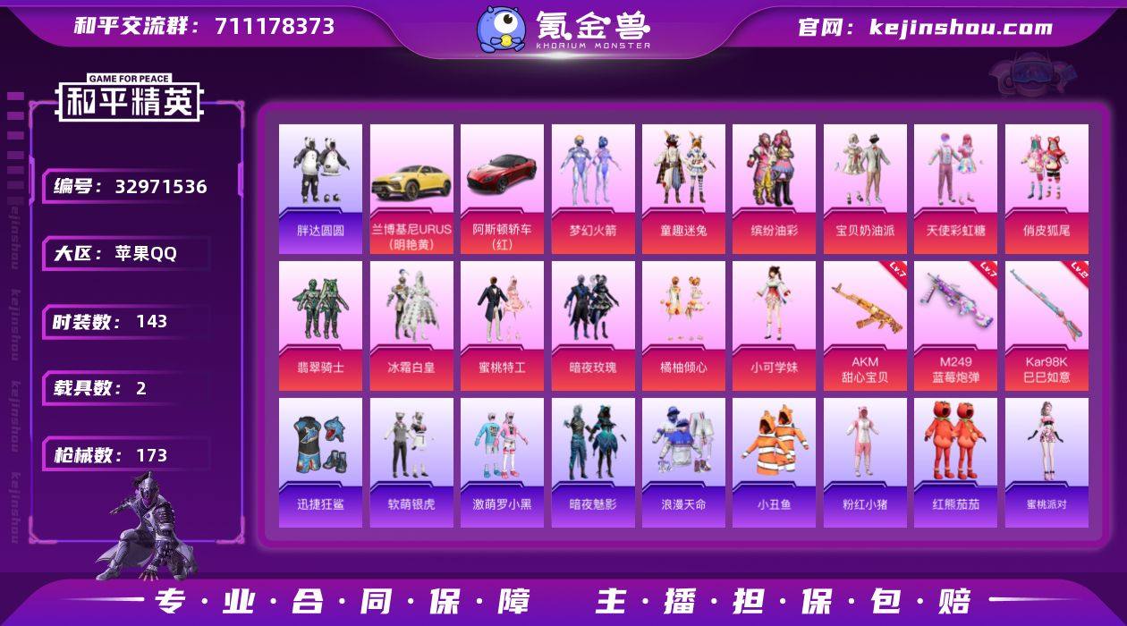 苹果【小号 粉装-梦幻火箭/粉装-宝贝奶油派/粉装-缤纷油彩/AKM-甜心宝贝(七级)/Kar98K-巳巳如意(二级)/兰博基尼URUS(明艳黄)/阿斯顿马丁DBS(红)/梦幻火箭背包(1级)/甜心宝贝背包/心之恋语背包】 手Q-12粉装-4特效枪-2载具-1粉色飞行器-65313热力值-9王牌印记-143套装-173枪皮 【热门品类】:粉装-梦幻火箭,粉装-童趣迷兔,粉装-缤纷油彩,套装-浪漫天命,套装-小丑鱼,套装-胖达圆圆,套装-粉红小猪,套装-红熊茄茄 【粉色套装】:粉装-宝贝奶油派,粉装-天使彩虹糖,粉装-梦幻火箭,粉装-缤纷油彩,粉装-俏皮狐尾,粉装-翡翠骑士,粉装-冰霜白皇,粉装-童趣迷兔,粉装-蜜桃特工,粉装-暗夜玫瑰,粉装-橘柚倾心,角色-小可学妹 【粉色枪皮等级】:AKM-甜心宝贝(七级),Kar98K-巳巳如意(二级),Mk14-福马献瑞(一级),M249-蓝莓炮弹(七级) 【粉色载具】:兰博基尼URUS(明艳黄),阿斯顿马丁DBS(红) 【粉色枪皮】:AKM-甜心宝贝,Kar98K-巳巳如意,Mk14-福马献瑞,M249-蓝莓炮弹 【粉色飞行器】:梦幻火箭飞行器 【粉色降落伞】:百万伏特降落伞,春暖花开降落伞,梦幻火箭降落伞,甜蜜誓约降落伞,四圣焕新降落伞,锦绣火鲤降落伞,葫芦兄弟降落伞,暗夜玫瑰降落伞,洛...