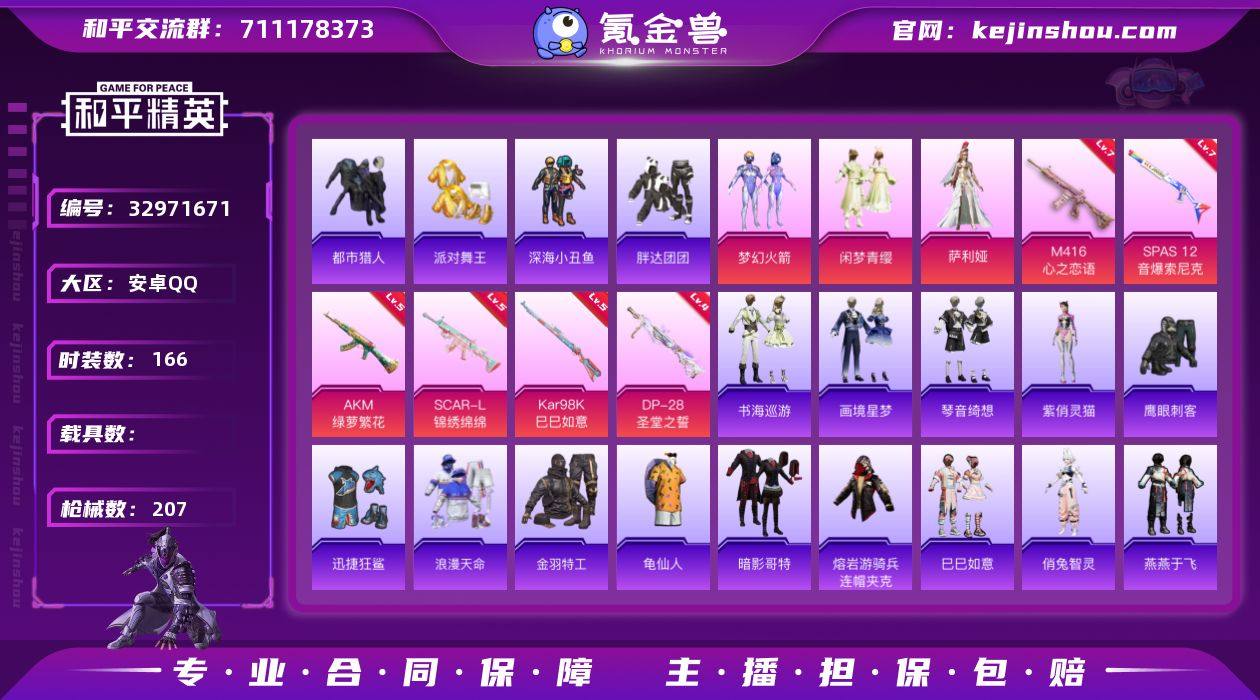 安卓【男神号 粉装-梦幻火箭,套装-浪漫天命,套装-都市猎人,套装-派对舞王,套装-胖达团团,套装-金羽特工,套装-暗影哥特,SCAR-L-锦绣绵绵(五级),M416-心之恋语(七级)】 手Q-3粉装-9特效枪-0载具-1粉色飞行器-64240热力值-11王牌印记-166套装-207枪皮 【热门品类】:粉装-梦幻火箭,套装-浪漫天命,套装-都市猎人,套装-派对舞王,套装-深海小丑鱼,套装-胖达团团,套装-金羽特工,套装-龟仙人,套装-暗影哥特,熔岩游骑兵连帽夹克 【粉色套装】:粉装-梦幻火箭,粉装-闲梦青缨,角色-萨利娅 【粉色枪皮等级】:AKM-绿萝繁花(五级),SCAR-L-锦绣绵绵(五级),M416-心之恋语(七级),AKS-74U-森灵之息(五级),Kar98K-巳巳如意(五级),Mk14-福马献瑞(五级),SPAS-12-音爆索尼克(七级),DP-28-圣堂之誓(四级),PKM-萌骑夺宝(二级) 【粉色枪皮】:AKM-绿萝繁花,SCAR-L-锦绣绵绵,M416-心之恋语,AKS-74U-森灵之息,Kar98K-巳巳如意,Mk14-福马献瑞,SPAS-12-音爆索尼克,DP-28-圣堂之誓,PKM-萌骑夺宝 【粉色飞行器】:阿狸红飞行器 【粉色降落伞】:王牌四分卫降落伞,洛神天依降落伞,暗夜鎏金降落伞,第五大道降落伞,圣堂之誓降落伞,小叽联名款降落伞,江南烟雨降落伞 【...