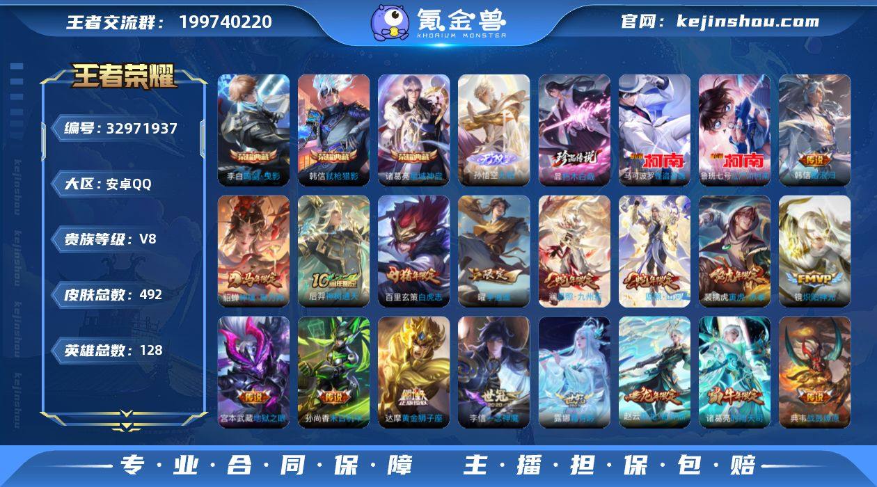 3个小国标 历史最高1.5w 多标号 v9 距离v10不远太久没充值降级了 将近500皮肤 历史百星 巅峰最高2000多 好多万战 十几个金标 很多英雄全皮 很多稀有 绝版皮肤 很多英雄有很多皮肤 只能展示一个