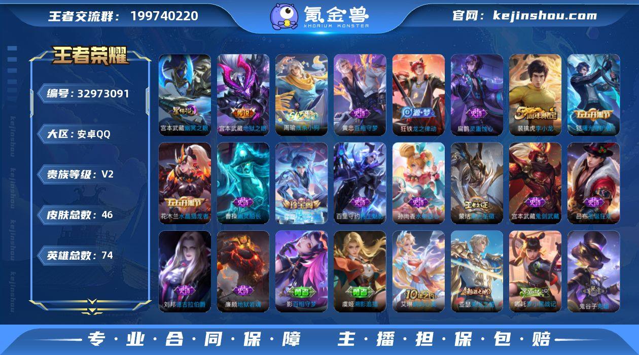 可换绑 2按键,1星传说,4王者印记,五级铭文60,可二次CD19266,安卓Q-V2-46皮肤-1传说-15史诗【英雄全皮】:影全皮【星元皮肤】:宫本武藏幽冥之眼【传说皮肤】:宫本武藏地狱之眼【限定皮肤】:狄仁杰阴阳师,裴擒虎李小龙,蒙恬荣光圣徽【赛季限定】:钟馗虚灵犬护,甄姬逆浪荇歌,亚瑟荣光之誓,蒙恬荣光圣徽【战令限定】:周瑜线条小狗【史诗皮肤】:周瑜线条小狗,黄忠百相守梦,扁鹊灵蛊蚀心,狂铁龙之律动,弈星万物之道,蒙恬荣光圣徽,裴擒虎李小龙,铠曙光守护者,百里守约特工魅影,刘邦德古拉伯爵,花木兰水晶猎龙者,曹操幽灵船长,吕布圣诞狂欢,孙尚香水果甜心,宫本武藏鬼剑武藏,廉颇地狱岩魂【其他皮肤】:影百相守梦,虞姬溯影追猎,艾琳鹤鸣心笺,亚瑟荣光之誓,哪吒罗小黑战记,鬼谷子克喵,莱西奥踏浪烽翎,甄姬逆浪荇歌,白起死霸装,姬小满小满鸭,露娜命运加冕,阿古朵布丁狗之约,钟馗虚灵犬护,东皇太一金福满堂,影魅影绮裳,姬小满零食大作战,猪八戒潮玩探月行,刘备汉昭烈帝,狄仁杰阴阳师,宫本武藏万象初新,张飞五福同心,达摩拳王,亚瑟死亡骑士,韩信教廷特使,司空震启蛰,蒙恬秩序猎龙将,盘古创世神祝,李信灼热之刃,杨戬埃及法老