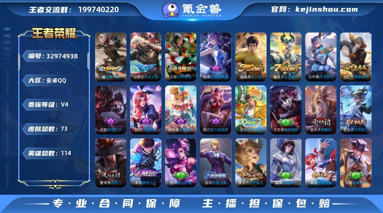 可换绑【精品小号·齐天大圣】 1按键 2王者印记 五级铭文50 可二次KK10712 安卓Q-V4-73皮肤-2传说-10史诗【传说皮肤】:孙悟空齐天大圣,曜云鹰飞将【限定皮肤】:狄仁杰阴阳师,元歌云间偶戏,夏侯惇朔风刀,狄仁杰万华元夜,项羽海滩派对,老夫子醍醐杖,亚瑟潮玩骑士王,孙悟空齐天大圣,李元芳云中旅人,钟馗驱傩正仪,干将莫邪胡桃夹子,鬼谷子原初探秘者,鬼谷子五谷丰年,沈梦溪大漠名商,明世隐疑决卦,裴擒虎李小龙,云中君纤云弄巧,鲁班大师探海日志,桑启海盐诗旅,张良古海寻踪,鬼谷子天穹祈灯,刘邦剑破天穹,程咬金群星魔术团【赛季限定】:夏侯惇朔风刀,明世隐疑决卦,老夫子醍醐杖,鬼谷子原初探秘者,狄仁杰万华元夜,钟馗驱傩正仪,沈梦溪大漠名商,李元芳云中旅人,桑启海盐诗旅,鲁班大师探海日志,张良古海寻踪,鬼谷子天穹祈灯,刘邦剑破天穹【战令限定】:元歌云间偶戏,亚瑟潮玩骑士王【史诗皮肤】:鬼谷子五谷丰年,元歌云间偶戏,云中君纤云弄巧,裴擒虎李小龙,狄仁杰鹰眼统帅,阿轲节奏热浪,白起星夜王子,妲己魅力维加斯,孙尚香水果甜心,甄姬冰雪圆舞曲【其他皮肤】:苏烈春野闲踪,刘备浪漫序章,大司命暗都幽影,程咬金群星魔术团,刘邦...