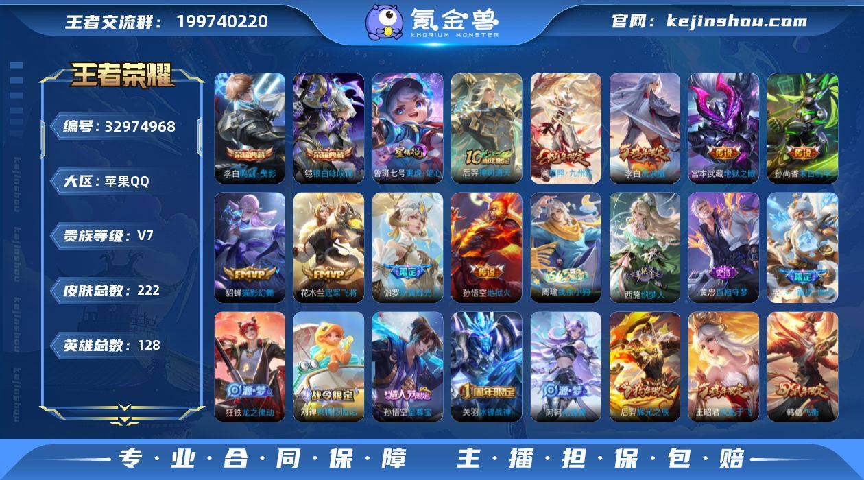 可换绑【精品号·典藏铠李白·蛇年澜·凤求凰·飞衡至尊宝】 全场景禁言到2026-11-14 1星传说 5按键 10王者印记 满级铭文 无二次包过KK10655 苹果Q-V7-222皮肤-2典藏皮肤-9传说-54史诗【荣耀典藏】:李白鸣剑曳影,铠银白咏叹调【星元皮肤】:鲁班七号寅虎焰心【传说皮肤】:后羿神树通天,澜愿照九州拓,伽罗炽翼辉光,貂蝉猫影幻舞,花木兰冠军飞将,李白凤求凰,孙尚香末日机甲,宫本武藏地狱之眼,孙悟空地狱火【限定皮肤】:白起狰,蒙犽顽岩魄,蔡文姬夏日便利店,虞姬夏日便利店,姜子牙天穹之誓,狄仁杰阴阳师,虞姬凯尔特女王,赵云皇家上将,孙尚香蔷薇恋人,高渐离死亡摇滚,扁鹊炼金王,芈月重明,周瑜赤莲之焰,夏侯惇朔风刀,甄姬游园惊梦,曹操烛龙,典韦穷奇,狄仁杰魔术师,狄仁杰万华元夜,达摩沙漠行僧,项羽海滩派对,老夫子醍醐杖,关羽冰锋战神,程咬金演武夺筹,韩信飞衡,王昭君凤凰于飞,兰陵王驯魔猎人,兰陵王金庭之子,孙悟空至尊宝,牛魔御旌,后羿辉光之辰,李元芳银河之约,李元芳云中旅人,钟馗驱傩正仪,杨玉环遇见飞天,干将莫邪胡桃夹子,蔡文姬繁星吟游,太乙真人饕餮,鬼谷子原初探秘者,百里玄策原初追逐者,弈星混沌棋,沈梦溪星空之诺,...
