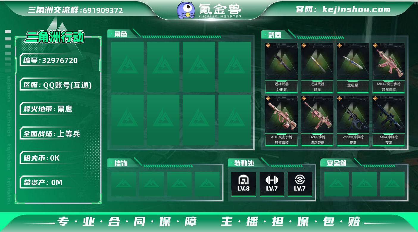 实名: 不可修改 烽火地带段位: 黑鹰 全面战场段位: 上等兵 总资产: 101 哈夫币: 1 传说武器皮肤: 近战-北极星,K437突击步枪-北极星,QCQ171冲锋枪-北极星,M4A1突击步枪-阿米娅,CAR-15突击步枪-阿米娅,复合弓-黑-天际线,AWM狙击步枪-捞点薯条,腾龙突击步枪-捞点薯条,93R-捞点薯条,AK-12突击步枪-特斯拉线圈,SR-3M紧凑突击步枪-特斯拉线圈,UZI冲锋枪-特斯拉线圈,勇士冲锋枪-能天使-午夜邮差,M250通用机枪-骑士之心,S12K霰弹枪-电锯惊魂,M14射手步枪-电锯惊魂,ASh-12战斗步枪-鹅鸭杀,QCQ171冲锋枪-鹅鸭杀,QJB201轻机枪-鹅鸭杀,SG552突击步枪-运动员,近战-暗星,MK47突击步枪-暗星,SR-3M紧凑突击步枪-暗星,近战-处刑者,M14射手步枪-蛮荒,腾龙突击步枪-马年祥瑞,G18-马年祥瑞,Vector冲锋枪-夜莺,MK4冲锋枪-夜莺,Mini-14射手步枪-夜莺,.357左轮-缄花,SR-25射手步枪-缄花,M14射手步枪-缄花,SMG-45冲锋枪-锦绣,K437突击步枪-锦绣,AKM突击步枪-锦绣,MK47突击步枪-悠然茶歇,AUG突击步枪-悠然茶歇,UZI冲锋枪-悠然茶歇 亮点: 【优质装备】:近战-北极星