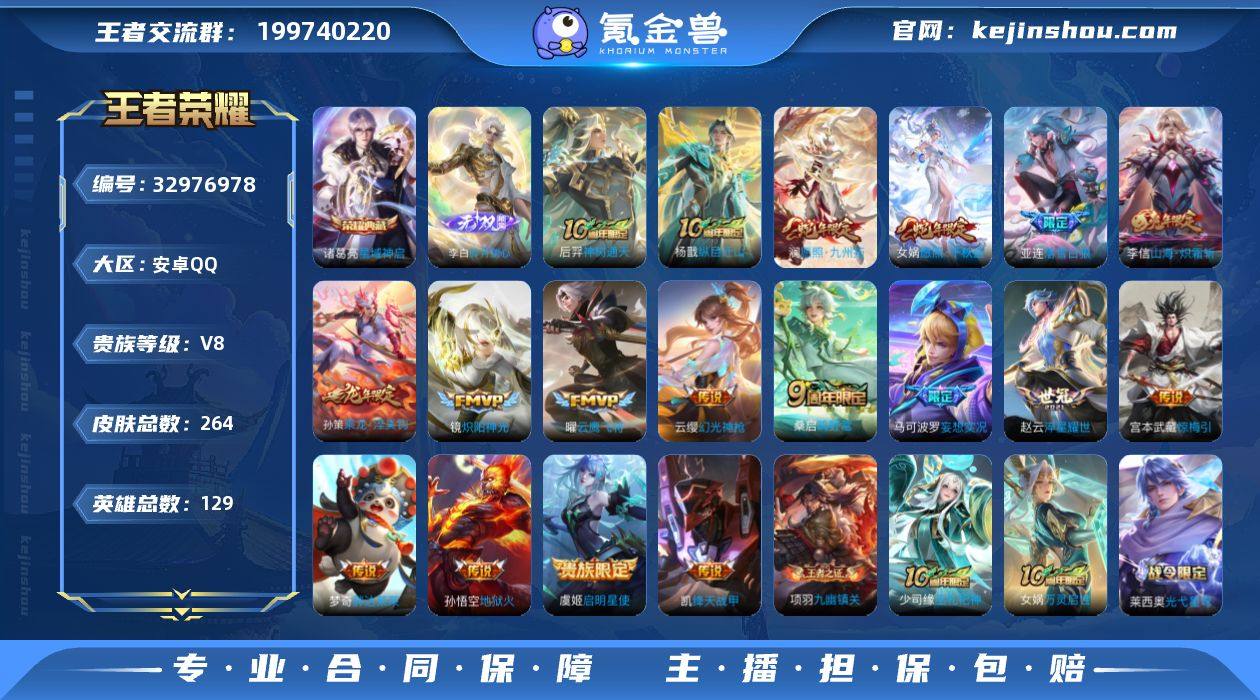 【王者荣耀】珍品无双0 典藏1 无双1 珍品传说0 传说21 史诗95 英雄129 皮肤264 贵族8级 荣耀典藏:星域神启__无双皮肤:碎月剑心__传说皮肤:鸣野蒿|绛天战甲|炽阳神光|启明星使|胖达荣荣|地狱火|刘备-时之恋人|云鹰飞将|淬星耀世|惊梅引|落雪白狼|马超-琥珀纪元|妄想实况|周瑜-音你心动|乘龙·淬吴钩|山海·炽霜斩|幻光神枪|愿照·九州拓|愿照·千秋盛|神树通天|纵目迁山__稀有限定:地狱燃心|古海寻踪|海滩派对|海盐诗旅|胡桃异想国|皇家上将|辉光之辰|剑破天穹|江河有灵|美猴王|迷踪丽影|魔术师|奇幻香踪|擒涛扼浪|青焰无极|燃音魔法|荣光圣徽|探海日志|天穹祈灯|妄想食味|无心|纤云弄巧|星界游侠|夜都魔契|阴阳师|优雅恋人|驭风魔法|原初追逐者|云端筑梦师|暗夜贵公子|暗隐猎兽者|暗渊魔法|白龙吟|缤纷独角兽|冰冠公主|冰雪圆舞曲|苍穹之光|乘风破浪|乘龙·忆丹青|大乔-猫狗日记|德古拉伯爵|地狱岩魂|功夫厨神|鬼剑武藏|唤灵魅影|节奏热浪|金属风暴|李元芳-蔬乡物语|吕布-末日机甲|魅力维加斯|魅语|女仆咖啡|偶像歌手|热力回旋|赏金猎手|上官婉儿-群星魔术团|绅士熊喵|圣诞狂欢|圣诞恋歌|鲁班七号-蔬乡物语|水果甜心|水晶猎龙者|天才门将|天秀·启明|晚萤|赵云-未来纪元|星夜王子|雪...