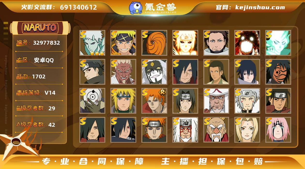 实名: 可修改 贵族等级: V14 S忍数: 29 A忍数: 42 战力值(万): 1702 S级忍者: 佩恩·天道「超」,宇智波斑 「木叶创立」,宇智波斑,千手柱间,千手扉间,佩恩「天道」,波风水门,纲手,宇智波鼬 「须佐能乎」,大野木「三代目土影」,自来也「仙人模式」,猿飞日斩,自来也 「舞之豪杰」,宇智波斑「白面具」,春野樱 「忍界大战」,神秘面具男 「红夜之刃」,宇智波佐助「永恒万花筒」,千手柱间·木叶创立,宇智波斑「秽土转生·解」,大筒木桃式,艾「忍界大战」,宇智波止水「须佐能乎」,大筒木舍人 「最终章」,漩涡鸣人 「暴怒·第六尾」,烈斗「初代目风影」,波风水门「九喇嘛连结」,宇智波斑「五影会谈」,漩涡鸣人·宇智波佐助,宇智波带土「十尾人柱力」 通灵兽: 熊猫 亮点: 【优质装备】:熊猫,佩恩·天道「超」,宇智波斑 「木叶创立」,宇智波斑,千手柱间,千手扉间,大野木「三代目土影」,宇智波斑「白面具」,春野樱 「忍界大战」,神秘面具男 「红夜之刃」,宇智波佐助「永恒万花筒」,千手柱间·木叶创立,宇智波斑「秽土转生·解」,大筒木桃式,艾「忍界大战」,宇智波止水「须佐能乎」,大筒木舍人 「最终章」,漩涡鸣人 「暴怒·第六尾」,烈斗「初代目风影」霸体lv10