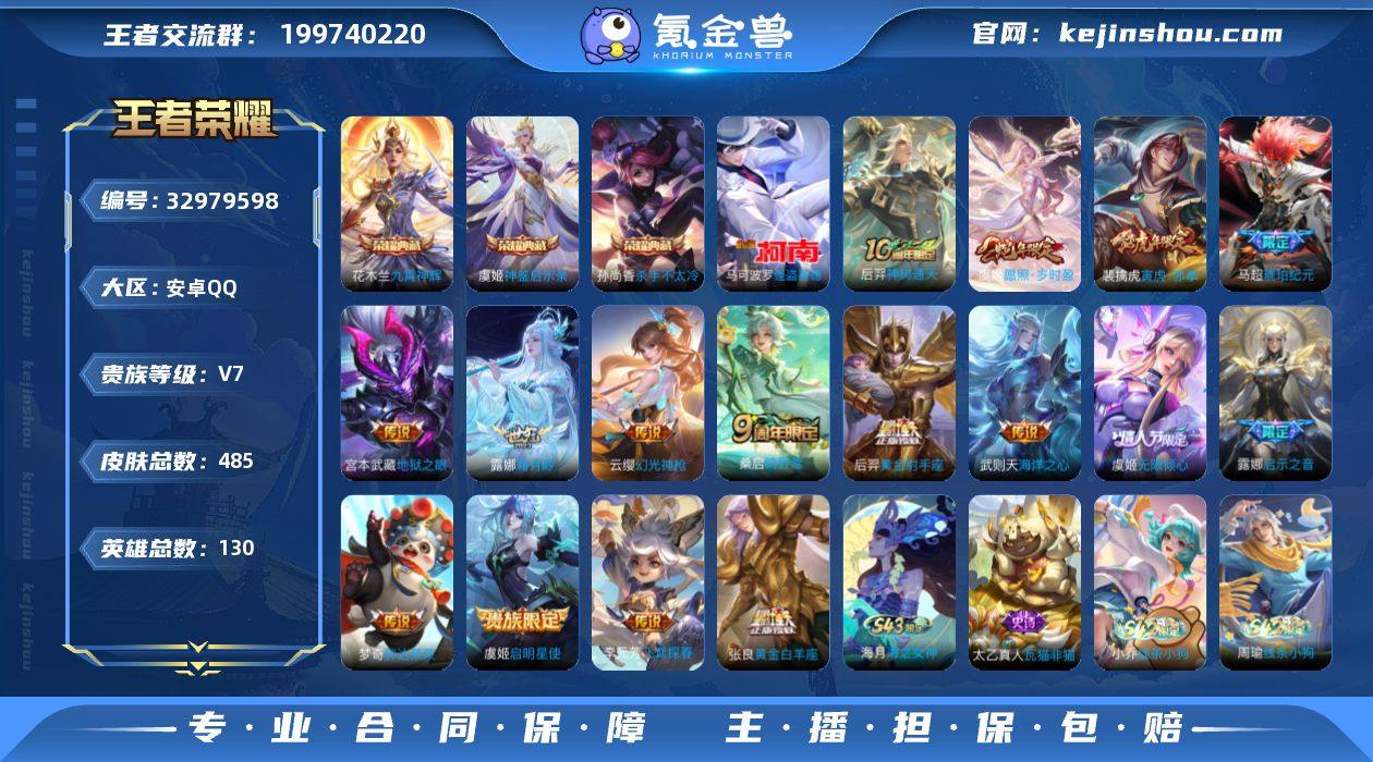 【安卓QQ区王者荣耀账号】皮肤485,英雄130,贵族8级 一个传说天幕 (露娜/阿轲/狂铁/太乙真人/钟馗/鬼谷子/雅典娜/阿古朵/等英雄 全皮肤)全英雄 有亚瑟 狮心王 关羽一周年皮肤 账号安全,可二次实名 喜欢收集皮肤和英雄的可以看看