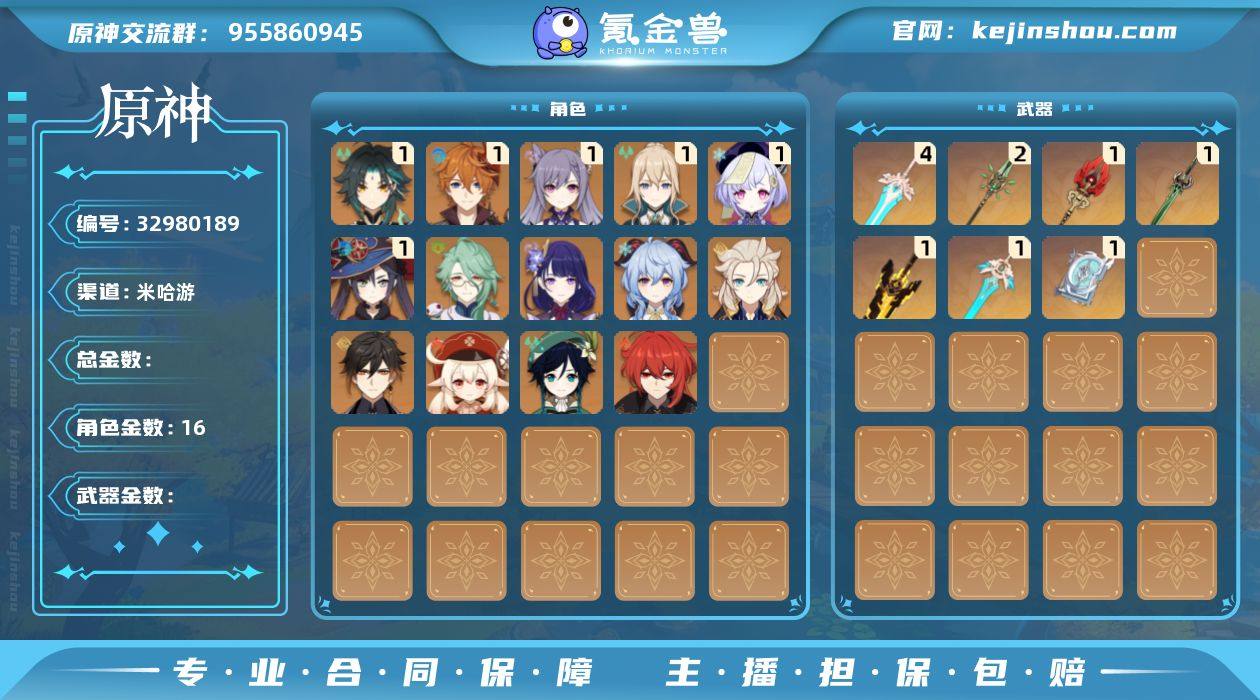 【金色角色】:白术(0命),雷电将军(0命),魈(1命),甘雨(0命),阿贝多(0命),钟离(0命),达达利亚(1命),可莉(0命),温迪(0命),琴(1命),刻晴(1命),迪卢克(0命),莫娜(1命),七七(1命) 【拥有武器】:护摩之杖(精1),磐岩结绿(精1),无工之剑(精1),天空之傲(精4),和璞鸢(精2),四风原典(精1),天空之刃(精1) 【紫色角色】:瑶瑶(0命),莱依拉(1命),坎蒂丝(0命),柯莱(0命),久岐忍(0命),云堇(1命),托马(2命),早柚(4命),烟绯(5命),罗莎莉亚(3命),辛焱(满命),迪奥娜(4命),砂糖(满命),雷泽(2命),菲谢尔(4命),丽莎(0命),北斗(满命),香菱(3命),安柏(1命),班尼特(4命),行秋(满命),芭芭拉(满命),凝光(5命),诺艾尔(满命),凯亚(3命),重云(满命)