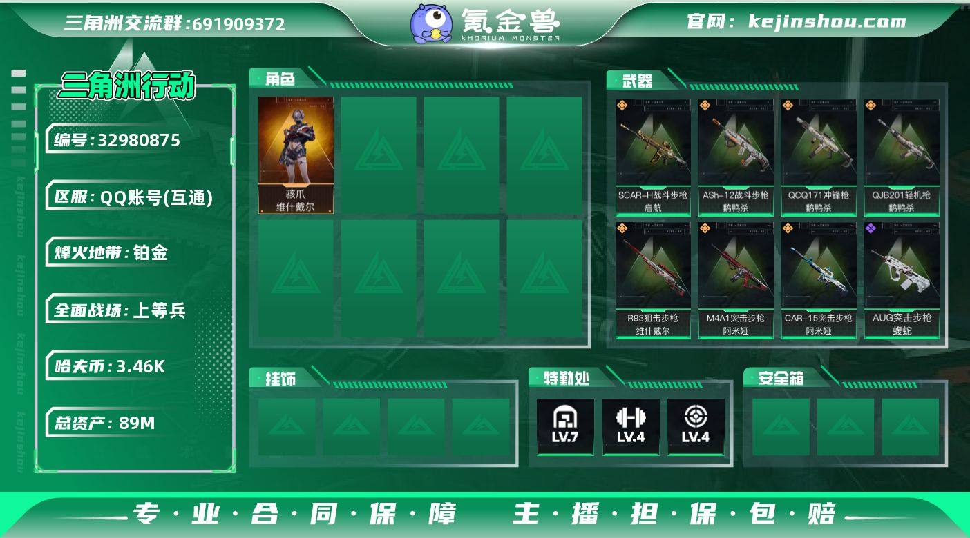 crsj15+有二次【满级 资产89M 骇爪-维什戴尔 】【总资产(M)】89M【哈夫币】3468K【行动等级】60【烽火地带段位】铂金【干员皮肤】骇爪-维什戴尔【近战武器】黑鹰【枪皮】SCAR-H战斗步枪-旧工业 PTR-32突击步枪-花岗岩 AS Val突击步枪-地平线 M4A1突击步枪-粉色涂装 M4A1突击步枪-高雅黑 M4A1突击步枪-海色 M4A1突击步枪-零点 M4A1突击步枪-阿米娅 AKM突击步枪-肃杀 QBZ95-1突击步枪-高雅黑 QBZ95-1突击步枪-海浪 QBZ95-1突击步枪-海色 QBZ95-1突击步枪-2026 QBZ95-1突击步枪-公平竞技 AKS-74U突击步枪-冰天雪地 ASh-12战斗步枪-鹅鸭杀 K416突击步枪-几何迷彩 K416突击步枪-高雅黑 K416突击步枪-碳纤维 K416突击步枪-一帆风顺 M16A4突击步枪-高雅黑 AUG突击步枪-浅蓝涂装 AUG突击步枪-蝮蛇 M7战斗步枪-红色涂装 M7战斗步枪-黑巧甜心 M7战斗步枪-捣蛋鬼 SG552突击步枪-海浪 SG552突击步枪-狂欢 SG552突击步枪-2026 SG552突击步枪-深海恐惧 AK-12突击步枪-零点 SCAR-H战斗步枪-数码迷彩 SCAR-H战斗步枪-荣耀列队 SCAR-H战斗步枪-启航 G3战斗步枪-高雅黑 G3战斗步枪-骑士 PTR-32突击步枪-黄蜂 CAR-15突击步枪-狂欢 CAR-15突击步枪-亚特兰蒂斯 CAR-15突击步枪-阿米娅 AS Val突击步...