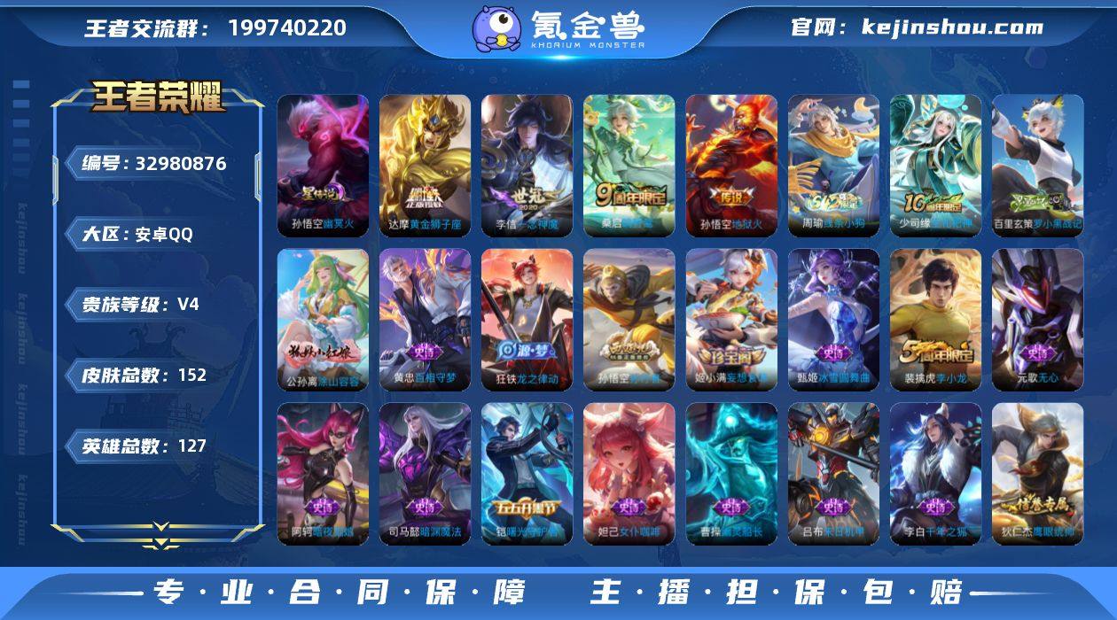 【Ewz624】【新手入坑号】安卓Q-V4-最强王者段位-127英雄-152皮肤-4传说-36史诗 【传说皮肤】:桑启鸣野蒿,李信一念神魔,达摩黄金狮子座,孙悟空地狱火 【限定皮肤】:蒙犽顽岩魄,姜子牙天穹之誓,杨戬破阵退雄兵,狄仁杰阴阳师,嬴政优雅恋人,元歌无心,达摩沙漠行僧,项羽海滩派对,兰陵王金庭之子,孙悟空孙行者,李元芳云中旅人,苏烈千军破阵,沈梦溪大漠名商,裴擒虎李小龙,裴擒虎擒涛扼浪,鲁班大师探海日志,桑启海盐诗旅,阿古朵江河有灵,张良古海寻踪,鬼谷子天穹祈灯,姬小满妄想食味,沈梦溪龙舞盛年,刘邦剑破天穹,程咬金群星魔术团,刘备异域游侠,周瑜熔金海岸 【赛季限定】:苏烈千军破阵,达摩沙漠行僧,兰陵王金庭之子,沈梦溪大漠名商,李元芳云中旅人,桑启海盐诗旅,裴擒虎擒涛扼浪,鲁班大师探海日志,张良古海寻踪,鬼谷子天穹祈灯,刘邦剑破天穹,姜子牙天穹之誓,东皇太一噬灭天穹,太乙真人谧流熔炉,钟馗虚灵犬护,甄姬逆浪荇歌,亚瑟荣光之誓 【战令限定】:周瑜线条小狗 【史诗皮肤】:周瑜线条小狗,少司缘巫礼祀神,百里玄策罗小黑战记,公孙离涂山容容,黄忠百相守梦,狂铁龙之律动,蒙犽顽岩魄,姬小满妄想食味,阿古朵江河有灵,元...