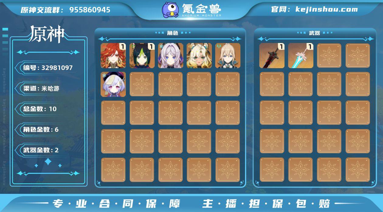 邮箱: 未绑定 总黄数: 10 冒险等级: 55 1命金色角色: 一命提纳里,一命玛薇卡 0命金色角色: 七七,琴,希诺宁,茜特菈莉 拥有武器: 狼的末路,天空之傲 1精武器: 狼的末路,天空之傲 亮点: 【YS1418】55级/10黄/女主/6个五星角色/2个五星武器/一命玛薇卡/茜特菈莉/希诺宁/一命提纳里/琴/七七/狼的末路/天空之傲