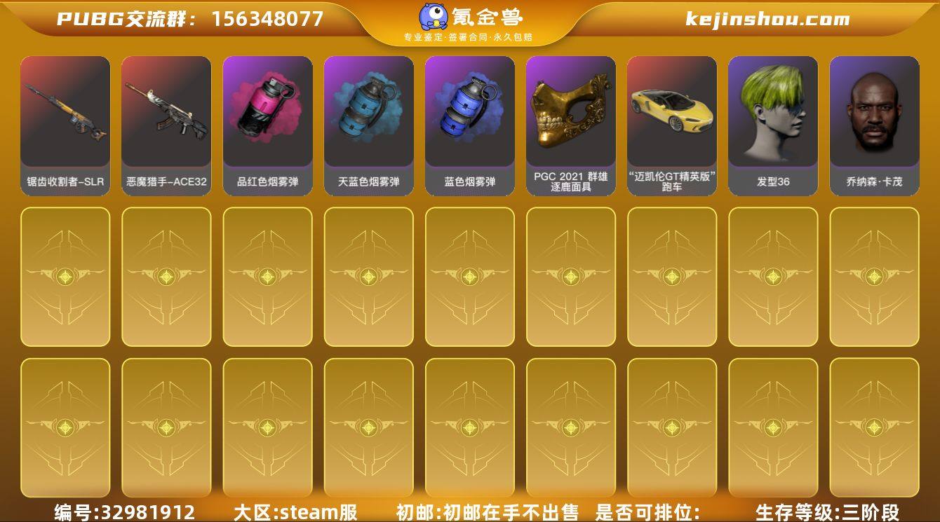 段位:黄金 生存等级:五阶段 4级魔咒之力-Mk12,4级猪八戒-M416,1级G-DRAGON-AUG,1级猛虎猎手-KAR98K 阿斯顿马丁SUV,马丁奢侈版跑车 卖家说:好号不等人,买到就是挣到
