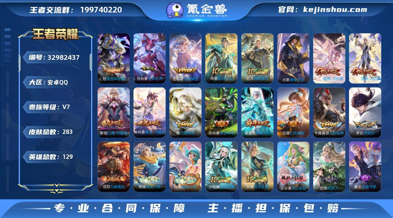 贵族7/皮肤283/典藏1/传说15/史诗70/英雄129/金标曹操/元歌全皮/孙权全皮/敖隐全皮/司空震全皮/影全皮/银白咏叹调/未来机甲/马超神骥逐星野/长夜焕生/纵目迁山/神树通天/诡秘之主/愿照·山河定/愿照·岁时盈/幻光神枪/乘龙·问璇玑/山海·炽霜斩/诗剑行/时雨天司/炽阳神光/久胜战神/末日机甲-孙尚香/天穹之誓(s36)/阴阳师/皇家上将/狮舞东方/死亡摇滚/重明(s11)/赤莲之焰/云间偶戏/无心/朔风刀(s17)/游园惊梦/烛龙(s10)/穷奇(s12)/山海·玄木吟/魔术师/万华元夜(s22)/沙漠行僧(s26)/海滩派对/醍醐杖(s20)/演武夺筹(s23)/一生所爱/逐梦之影/驯魔猎人/金庭之子(s27)/潮玩骑士王/大圣娶亲/御旌(s15)/云中旅人(s29)/神迹守卫-钟馗/驱傩正仪(s24)/胡桃夹子/黎明之约/原初探秘者(s21)/五谷丰年/青龙志/千军破阵(s25)/原初追遂者/朱雀志/混沌棋(s18)/顽趣-梦奇/大漠名商(s28)/疑决卦(s19)/李小龙/擒涛扼浪(s31)/御狮(s13)/御霄(s14)/纤云弄巧/御銮(s16)/梁祝/探海日志(s32)/海盐诗旅(s30)/女武神/流音漫舞/地狱燃心/江河有灵/古海寻踪(s33)/蒙恬荣光圣徽/鬼谷子天穹祈灯(S34)/妄想食味/龙武盛年/剑破天穹(s35)/程咬金群星魔术团/熔金海岸/噬灭天穹(s37)/谧流熔炉/虚灵犬护/逆浪荇歌/荣光之...