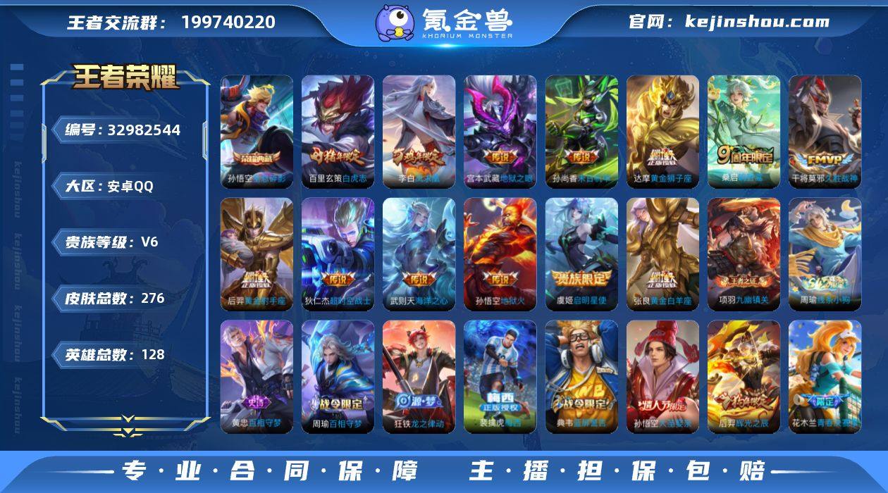 安卓Q-V6-最强王者段位-128英雄-276皮肤-1典藏皮肤-1典藏英雄-13传说-76史诗【英雄全皮】:孙权全皮【荣耀典藏】:武则天英雄,孙悟空全息碎影【传说皮肤】:桑启鸣野蒿,虞姬启明星使,张良黄金白羊座,干将莫邪久胜战神,达摩黄金狮子座,百里玄策白虎志,后羿黄金射手座,李白凤求凰,孙尚香末日机甲,宫本武藏地狱之眼,孙悟空地狱火,武则天海洋之心,狄仁杰超时空战士【限定皮肤】:白起狰,姜子牙天穹之誓,狄仁杰阴阳师,赵云皇家上将,鲁班七号狮舞东方,芈月重明,周瑜赤莲之焰,元歌云间偶戏,元歌无心,夏侯惇朔风刀,曹操烛龙,典韦穷奇,典韦蓝屏警告,狄仁杰魔术师,狄仁杰万华元夜,项羽海滩派对,老夫子醍醐杖,程咬金演武夺筹,露娜一生所爱,兰陵王驯魔猎人,花木兰青春决赛季,孙悟空大圣娶亲,牛魔御旌,后羿辉光之辰,李元芳银河之约,李元芳云中旅人,虞姬启明星使,钟馗神迹守卫,杨玉环遇见飞天,女娲朔望之晖,蔡文姬繁星吟游,太乙真人饕餮,太乙真人华丽摇滚,鬼谷子原初探秘者,鬼谷子五谷丰年,百里玄策白虎志,百里玄策原初追逐者,弈星混沌棋,梦奇顽趣,公孙离蜜橘之夏,沈梦溪星空之诺,沈梦溪大漠名商,明世隐疑决卦,裴擒虎擒涛扼浪,狂...
