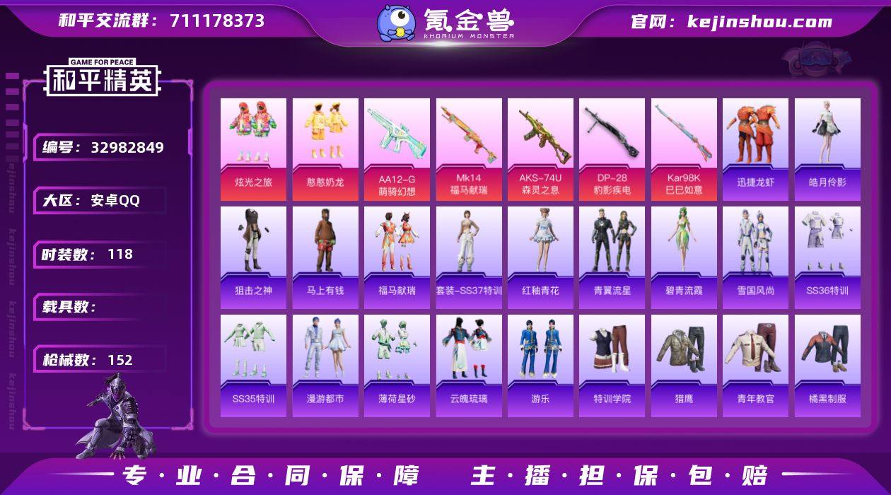 【0载具 5特效枪 2粉装 152枪皮 118套装】套装-炫光之旅,套装-憨憨奶龙,套装-老实芭蕉 Kar98K-巳巳如意,Mk14-福马献瑞,AKS-74U-森灵之息,AA12-G-萌骑幻想,DP-28-豹影疾电 马上有福飞行器,异域银装飞行器,登顶巅峰飞行器,编号:ZPQTO78