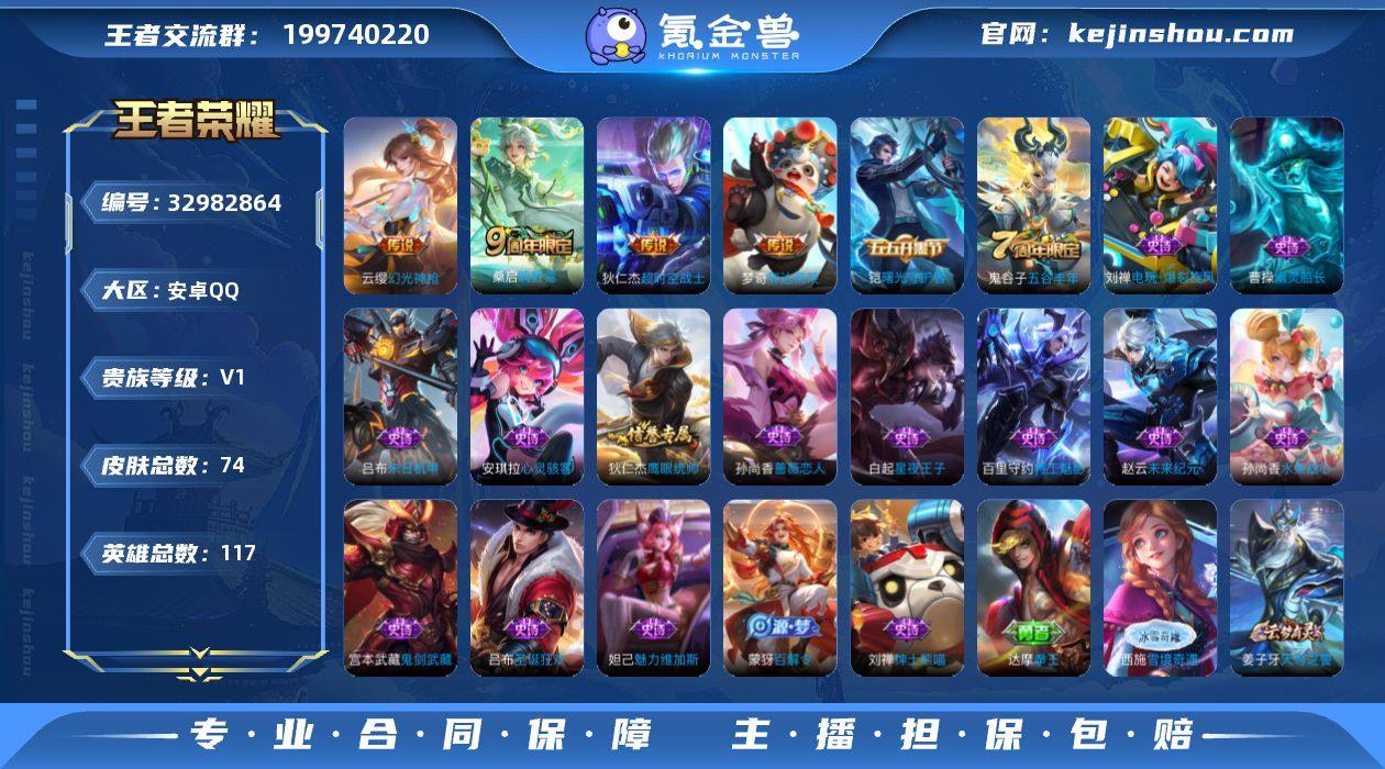 安卓Q-V0-荣耀黄金IV段位-117英雄-74皮肤-4传说-17史诗【传说皮肤】:云缨幻光神枪,桑启鸣野蒿,梦奇胖达荣荣,狄仁杰超时空战士【限定皮肤】:姜子牙天穹之誓,狄仁杰阴阳师,孙尚香蔷薇恋人,狄仁杰万华元夜,达摩沙漠行僧,项羽海滩派对,李元芳云中旅人,鬼谷子原初探秘者,鬼谷子五谷丰年,沈梦溪大漠名商,裴擒虎擒涛扼浪,鲁班大师探海日志,桑启海盐诗旅,张良古海寻踪,蒙犽百解令,鬼谷子天穹祈灯,沈梦溪龙舞盛年,刘邦剑破天穹,程咬金群星魔术团,周瑜熔金海岸【赛季限定】:鬼谷子原初探秘者,狄仁杰万华元夜,达摩沙漠行僧,沈梦溪大漠名商,李元芳云中旅人,桑启海盐诗旅,裴擒虎擒涛扼浪,鲁班大师探海日志,张良古海寻踪,鬼谷子天穹祈灯,刘邦剑破天穹,姜子牙天穹之誓,东皇太一噬灭天穹,太乙真人谧流熔炉【史诗皮肤】:蒙犽百解令,刘禅电玩爆裂旋风,鬼谷子五谷丰年,狄仁杰鹰眼统帅,白起星夜王子,铠曙光守护者,百里守约特工魅影,安琪拉心灵骇客,吕布末日机甲,曹操幽灵船长,刘禅绅士熊喵,吕布圣诞狂欢,妲己魅力维加斯,孙尚香水果甜心,孙尚香蔷薇恋人,宫本武藏鬼剑武藏,赵云未来纪元【其他皮肤】:明世隐景韶洛都,西施雪境奇遇,影魅影...