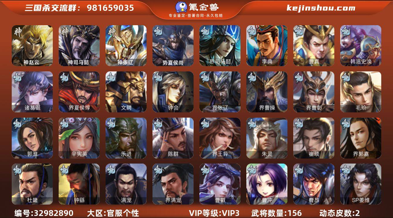 【14789940】官阶:先锋将军;VIP等级:VIP3;史诗武将数量:6;动态皮肤数量:2;武将总数:156;史诗宝珠数量:14;将魂数量:3658;神将:3;魏国史诗武将:0;蜀国史诗武将:2;吴国史诗武将:0;群史诗武将:1