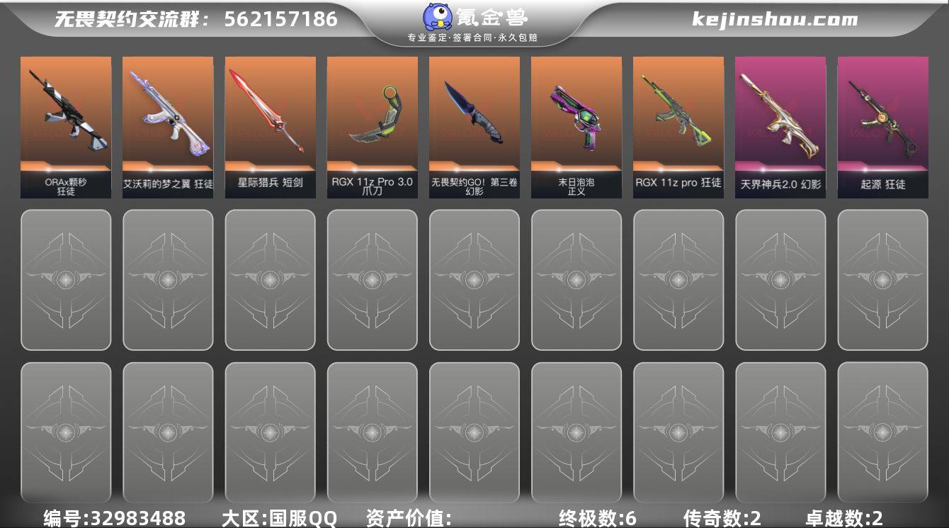 段位: 白银 套装: 无畏契约GO!第三卷套装 近战武器皮肤: 爪刀-RGX 11z Pro 3.0,匕首-无畏契约GO!第三卷,星际猎兵 短剑 步枪皮肤: 狂徒-起源,幻影-天界神兵2.0,狂徒-艾沃莉的梦之翼,狂徒-RGX 11z pro,狂徒-ORAx颗秒 佩枪皮肤: 正义-末日泡泡 亮点: 【MWW961】【套装】:无畏契约GO!第三卷套装【英雄】:幻棱,炼狱,暮蝶,壹决,铁臂,捷风,雷兹,幽影,不死鸟,贤者,猎枭,芮娜,尚勃勒,霓虹,夜露,盖可,黑梦【近战武器】:近战武器-无畏契约GO!第三卷 匕首,近战武器-RGX 11z Pro//3.0 爪刀,近战武器-黑波之刃,近战武器-星际猎兵 短剑【狂徒】:狂徒-RGX 11z Pro,狂徒-ORA x 颗秒,狂徒-艾沃莉的梦之翼,狂徒-起源【幻影】:幻影-天界神兵//2.0,幻影-无畏契约GO!第三卷【飞将】:飞将-无畏契约GO!第三卷【骇灵】:骇灵-无畏契约GO!第三卷【正义】:正义-末日泡泡【鬼魅】:鬼魅-无畏契约GO!第三卷【卡面】:维斯工牌 卡面,无畏契约GO!第一卷:零 卡面,《双城之战》金克丝 卡面,黑影先生的咖啡! 卡面,代号红色 卡面,新兵报到 卡面,V契约 卡面,无畏契约 卡面【喷漆】:霓光四射 喷漆,买装还是存钱 喷漆,关门放狗 喷漆,无畏契约GO!第一卷:贤者...