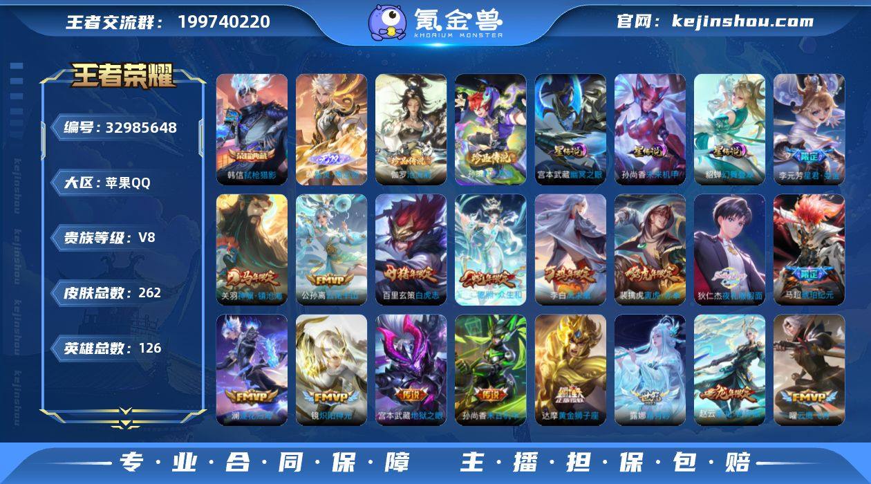 【高性价比·夜礼服假面·器灵螭龙剑·沧流箭·孙策时之奇旅·弑枪猎影·幻舞叠翠·马超琥珀纪元·白虎志·凤求凰·寅虎赤拳·神骥镇沧海·星君娄金·乘龙铭钟鼎·霜月吟·孙尚香异界灵契·无二次包过】YXw22588-苹果Q-126英雄-262皮肤-6王者印记-170铭文-贵族积分9w【贵族8】【1典藏·1无双·2珍品·4星传说·27传说·25按键】【因赛季更新游戏段付以上号为准!】 【英雄全皮】:达摩全皮,刘备全皮,敖隐全皮,戈娅全皮,影全皮 【荣耀典藏】:韩信弑枪猎影 【无双皮肤】:曜器灵螭龙剑 【珍品传说】:伽罗沧流箭,孙策时之奇旅 【星元皮肤】:刘备时之思念,孙尚香未来机甲,宫本武藏幽冥之眼,貂蝉幻舞叠翠 【传说皮肤】:关羽神骥镇沧海,李元芳星君娄金,公孙离云诺千山,妲己愿照众生和,桑启鸣野蒿,赵云乘龙铭钟鼎,马超琥珀纪元,澜逐花归海,露娜霜月吟,狄仁杰夜礼服假面,花木兰燃星之曲,孙悟空齐天大圣,孙策末日机甲,裴擒虎寅虎赤拳,孙尚香异界灵契,镜炽阳神光,虞姬启明星使,曜云鹰飞将,刘备时之恋人,貂蝉猫影幻舞,张良黄金白羊座,达摩黄金狮子座,百里玄策白虎志,后羿黄金射手座,李白凤求凰,孙尚香末日机甲,宫本武藏地狱之眼 【限定皮肤】:暃埋骨钱,蒙犽顽岩魄,姜...