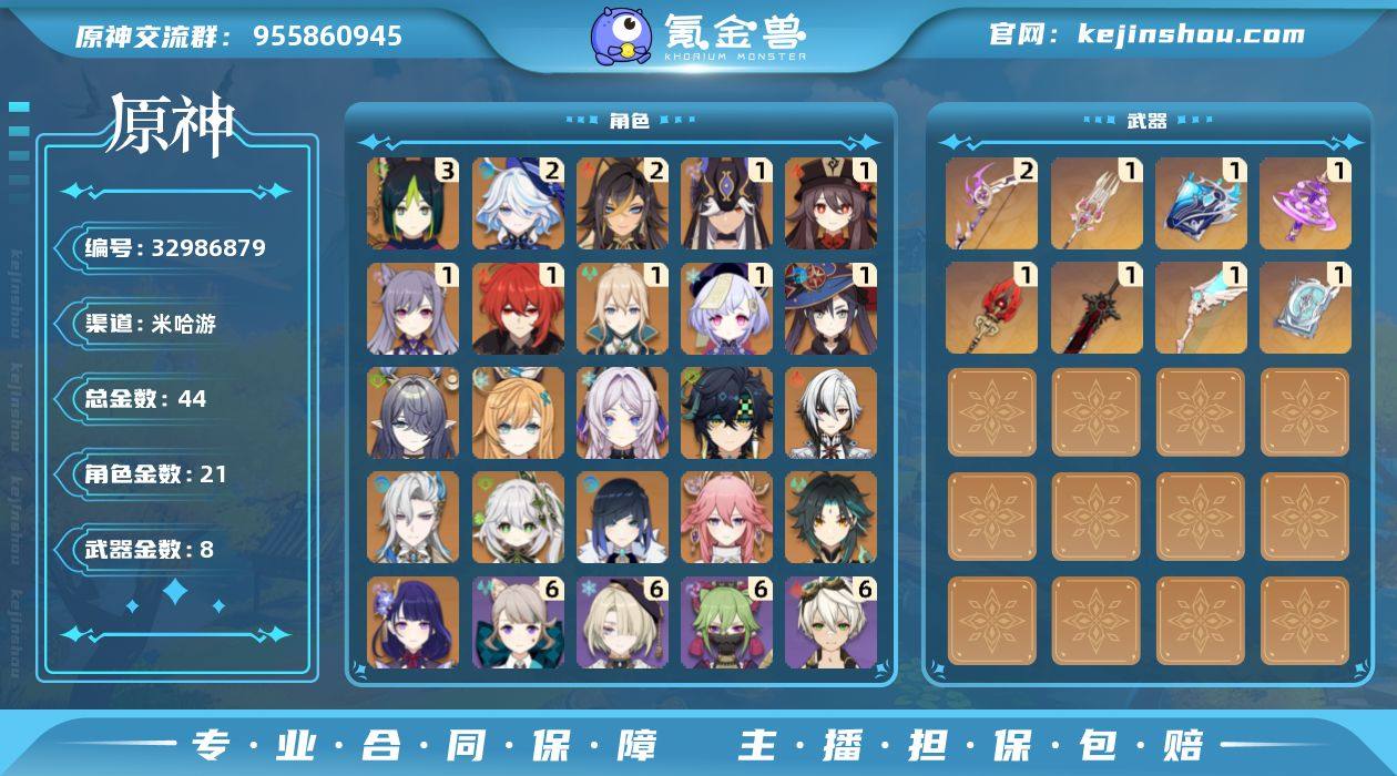 44黄! 冒险等级: 60 3命金色角色: 三命提纳里 2命金色角色: 二命迪希雅,二命芙宁娜 1命金色角色: 一命迪卢克,一命七七,一命刻晴,一命莫娜,一命琴,一命胡桃,一命赛诺 0命金色角色: 魈,雷电将军,八重神子,夜兰,纳西妲,那维莱特,阿蕾奇诺,基尼奇,茜特菈莉,爱可菲,菈乌玛 拥有武器: 狼的末路,天空之翼,飞雷之弦振,四风原典,护摩之杖,神乐之真意,万世流涌大典,香韵奏者 2精武器: 飞雷之弦振 1精武器: 狼的末路,天空之翼,四风原典,护摩之杖,神乐之真意,万世流涌大典,香韵奏者