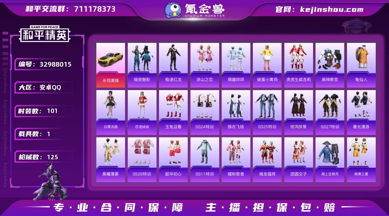M1047396有二次【1载具-1粉装-101套装】安卓手Q-1载具-1粉装-101套装-125枪皮-1王牌印记-坚韧铂金Ⅴ-33914热力值【1载具】永恒黄蜂【1粉装】角色-幻影【3稀有】M762-奇异狩猎者,M24-奇异狩猎者,汤姆逊-奇异狩猎者【1飞行器】太空嘟嘟飞行器【222其它衣服和枪皮】都市魅力,甜蜜菠萝,坚韧舞者,瑞龙福将,冷血极客,人气偶像,春光漫游,灼焰舞者,蓝彩潮人,舞夜骑士,玉兔迎春,SS14特训,恋语绒绒,海上生明月,黄色名流,霓虹街区,SS22特训,幻世战舞者,荣耀,青年教官,战地督导,SS21特训,SS18特训,SS16特训,白色伏地魔,韶华初心,SS11特训,蓝色运动,迅捷龙虾,长空猛禽,SS24特训,猎鹰,黄色伏地魔,吉莉礼服,白糯汤圆,SS17特训,柠萌假日,SS25特训,蓝调潮人,深蓝色名流,竞技达人朋克,涂山之恋,甜蜜告白,滨海假日,SS13特训,湖蓝色名流,SS15特训,莱茵河畔,绮丽涂鸦,极速红龙,龟仙人,黄色运动,都市漫游者,破蛋小黄鸡,耀粉歌者,福星高照,SS19特训,魅力单车,军械专家,特训学院,蓝色守护者,空投萌叽,猛禽,龙的传人,暗夜魅影,完美偶像,虎虎生威吉莉,晨曦薄雾,探宝勇士,锦衣飞扬,格斗先锋,SS12特训,团圆交子,竞技名士,萌趣颜团子,牛气满满,惊鸿侠骨,潮流游乐家,SS26特训,冷焰舞者,特种颜团子,牛气冲天,娇...