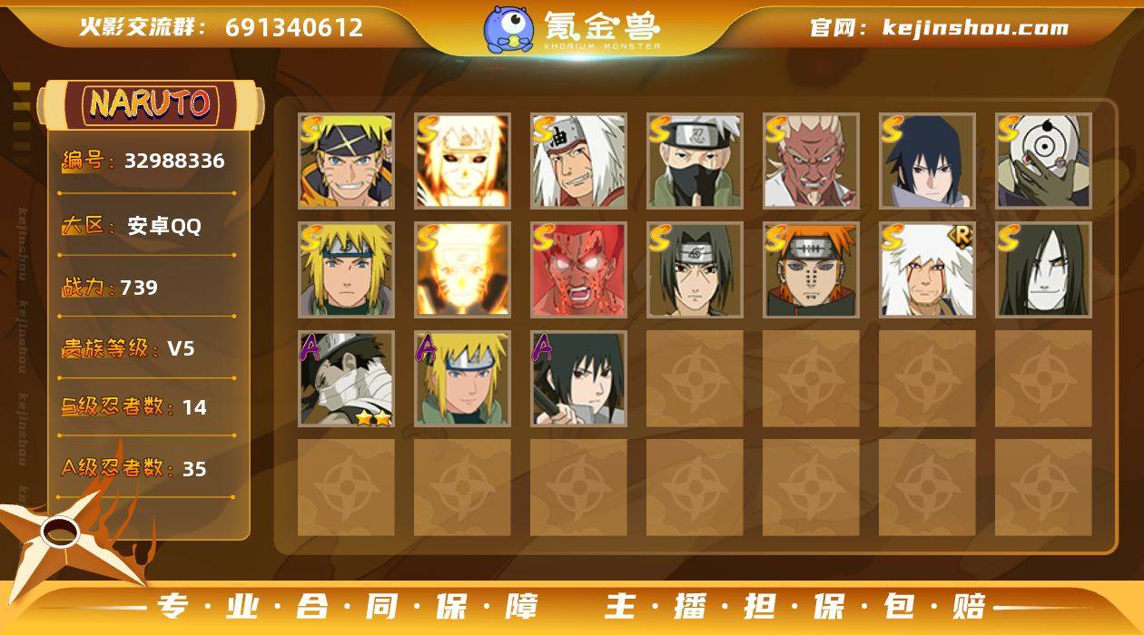 HY22022|【可实名】可二次 739w战力 v5 安卓QQ 2968区 S忍者数:14 A忍者数:35 时装12安卓QQ 2968区 S忍者数:14 A忍者数:35 忍者:漩涡鸣人·宇智波佐助,波风水门「九喇嘛连结」,自来也「传说中的三忍」,旗木卡卡西「须佐能乎」,艾「忍界大战」,宇智波佐助「永恒万花筒」,漩涡鸣人「九喇嘛连结」,迈特凯「死门」,自来也「舞之豪杰」,宇智波斑「白面具」,宇智波鼬「须佐能乎」,佩恩「天道」,波风水门,大蛇丸,小南「神驹佑将」,迈特凯「青春爆炸」,纲手「妖怪奇谭」,巳月「仙人模式」,大野木「侠隐江湖」,土台「忍界大战」,桃地再不斩「秽土转生」,宇智波泉奈,蝎「绯流琥」,不动,李洛克「忍界大战」,日向雏田「最终章」,漩涡博人「桃式显现」,日向宁次「忍界大战」,不缘,长十郎「六代目水影」,长门「青年」,艾「青年」,达鲁伊「五代目雷影」,波风水门「青年」,宇智波佐助「须佐能乎」,千代「近松十人卫」,我爱罗「忍界大战」,秋道丁次「忍界大战」,大蛇丸「晓」,宇智波佐助「万花筒写轮眼」,飞段「死司凭血」,飞段,迪达拉,我爱罗「疾风传」,蝎,干柿鬼鲛,宇智波鼬,猿飞阿斯玛,迈特凯,佩恩「畜生道」,重吾「忍界大战」,日向花火「武当宗师」,佩恩「地狱道」,雨琉「羁绊」,野原琳「漂...
