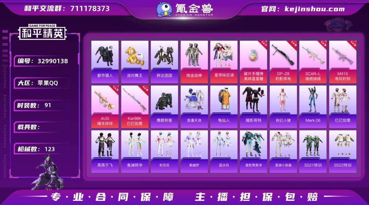 苹果【素材号/M416-星际漫游/都市猎人/派对舞王/胖达团团/暗影哥特/蓝螳螂/2粉装-9特效枪】 手Q--34373热力值-5王牌印记-91套装-123枪皮 【热门品类】:套装-浪漫天命,套装-都市猎人,套装-派对舞王,套装-胖达团团,套装-龟仙人,套装-暗影哥特,套装-粉红小猪,角色-Mark.06,M416-星际漫游 【粉色套装】:粉装-绚金战神,粉装-星穹咏叹调 【粉色枪皮等级】:SCAR-L-锦绣绵绵(五级),M416-电玩时刻(五级),AUG-暖羊咩咩(五级),ACE32-萌骑漫游(五级),Kar98K-巳巳如意(五级),Mk14-福马献瑞(三级),DP-28-豹影疾电(五级),烟雾弹-好运连连(四级),破片手榴弹-美味星星糖(七级) 【粉色枪皮】:SCAR-L-锦绣绵绵,M416-电玩时刻,AUG-暖羊咩咩,ACE32-萌骑漫游,Kar98K-巳巳如意,Mk14-福马献瑞,DP-28-豹影疾电,烟雾弹-好运连连,破片手榴弹-美味星星糖 【粉色降落伞】:月影灵韵降落伞,星穹咏叹调降落伞 【稀有套装】:套装-龟仙人,套装-巳巳如意,角色-魂电,角色-罗莉,角色-幸运青,套装-迅捷龙虾,套装-燕燕于飞,套装-鱼渊荷华,套装-粉恋花,套装-紫幽梦,套装-蓝冰羽,套装-星影赞美诗,套装-星渊小夜曲,套装-雨过天青,套装-红釉青花 【稀有枪皮】:AKM-破晓战...