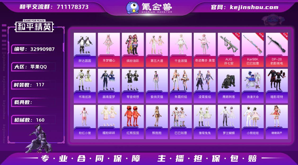 苹果【素材号/10王牌印记/缤纷油彩/胖达圆圆/6粉装-3特效枪-2粉色飞行器】 手Q--47275热力值-10王牌印记-117套装-160枪皮 【热门品类】:粉装-缤纷油彩,套装-浪漫天命,套装-胖达圆圆,套装-暗影哥特,套装-粉红小猪,套装-糯粉咩咩,套装-红熊茄茄 【粉色套装】:粉装-缤纷油彩,粉装-第五大道,角色-千金淑猫,角色-奇迹舞步 美雪,角色-羊梦糖心 【粉色枪皮等级】:AUG-许七安(七级),Kar98K-巳巳如意(五级),DP-28-豹影疾电(四级) 【粉色枪皮】:AUG-许七安,Kar98K-巳巳如意,DP-28-豹影疾电 【粉色飞行器】:炫彩糖果飞行器,萌物绒绒飞行器 【粉色降落伞】:第五大道降落伞,闲梦青缨降落伞,萌物绒绒降落伞,精灵梦叶罗丽降落伞,时空协奏降落伞,临安公主降落伞,晶梦幻蝶降落伞,樱桃泡泡降落伞,雪月幻音降落伞,无垠阁降落伞,魔童闹海 哪吒降落伞,炫彩糖果降落伞 【稀有套装】:套装-熊抱抱,套装-巳巳如意,套装-雪国风尚,套装-炫彩糖果,套装-雏菊兔兔,套装-萝兰蝴蝶,套装-小熊娃娃,套装-糖糖葫芦,套装-青团波波,套装-棉花软糖,角色-都市丽猫,套装-燕燕于飞,套装-鱼渊荷华,套装-晶辉守护,角色-糖霜甜心,套装-星影赞美诗,套装-朱霞炽焰,套装-凌...