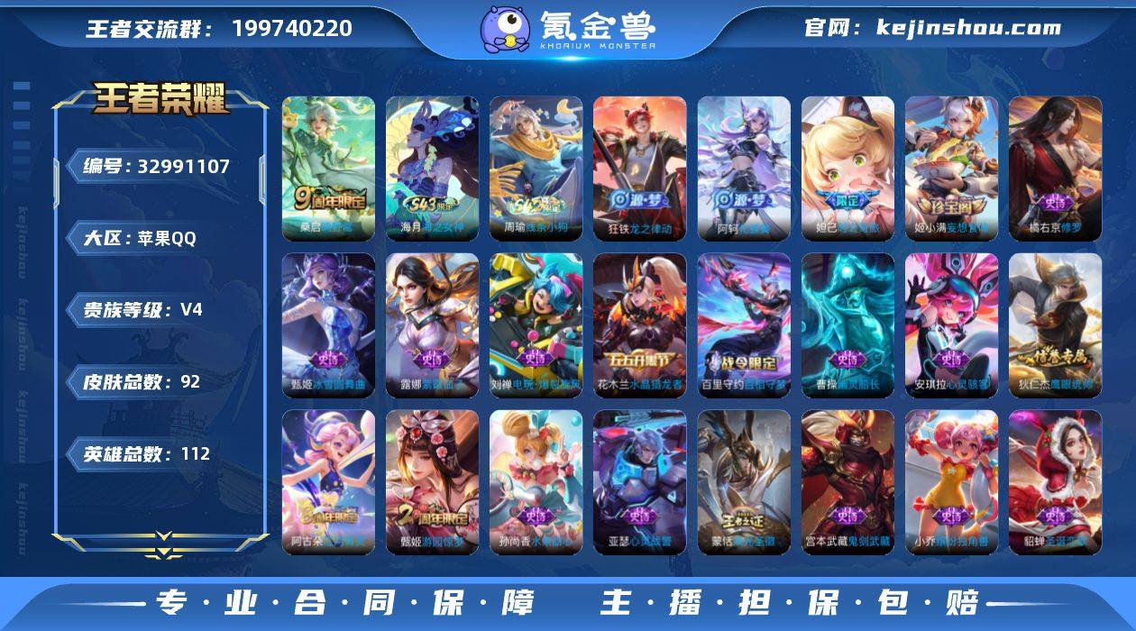 【W6295】【亮点:对抗40段-万战金标李信-幻夜逐光,凤鸣九霄天幕】苹果Q-可二次-贵8-127英雄-351皮肤-1典藏-2珍品传说-13传说-113限定-14按键-2天幕-贵族积分66747-营地ID:1719182742(热门:韩信弑枪猎影-安琪拉酷洛米之心-张飞兔狲·蓬尾-韩信踏浪归-貂蝉神骥·聚万邦-孙悟空至尊宝)