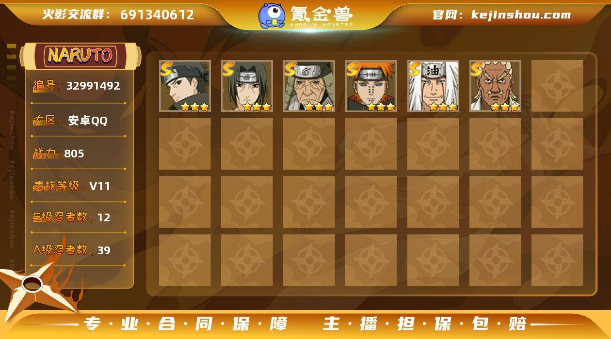 [18241881]V11 12S忍 39A忍 17通灵 805.7W战力 可二次 可修改实名 【S级忍者】宇智波止水「须佐能乎」,旗木卡卡西「须佐能乎」,大筒木舍人 「最终章」,漩涡鸣人 「暴怒·第六尾」,波风水门「九喇嘛连结」,漩涡鸣人·宇智波佐助,猿飞日斩「秽土转生」,艾「四代目雷影」,神秘面具男,宇智波鼬 「须佐能乎」,佩恩「天道」,自来也