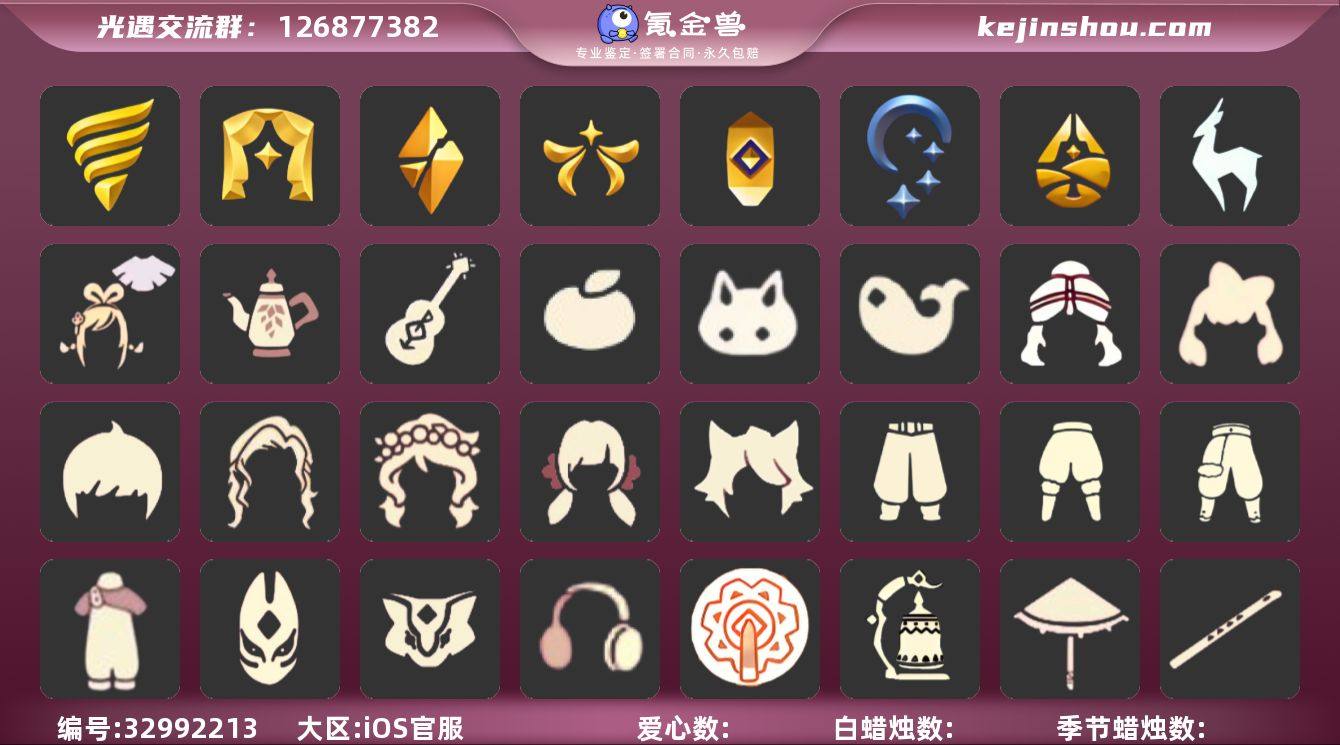 账号类型: 手机账号 季节已毕业: 潜海季,表演季,破晓季,欧若拉季,夜行季,追忆季,归巢季,九色鹿季 完成地图: 雨林,霞谷,暮土 珍稀物品: 白枭,透明蝶翼斗 礼包: 绊爱,茶壶,吉他,橘子,兔子,鲤鱼 裤子: 武士裤,背带裤,白棉裤,搓澡巾 面具: 黄鼠狼,红狐狸 面饰: 红耳机 项链: 围巾 发型: 蝴蝶结,正太,樱花,公主头,虚荣,猫耳 头饰: 花环 斗篷: 红金,白鸟斗,花瓣斗篷,荧蓝斗篷 配饰: 雨伞,高音钢琴,吉他,笛子,大铃铛乐器,乐器 亮点: 重塑药水106