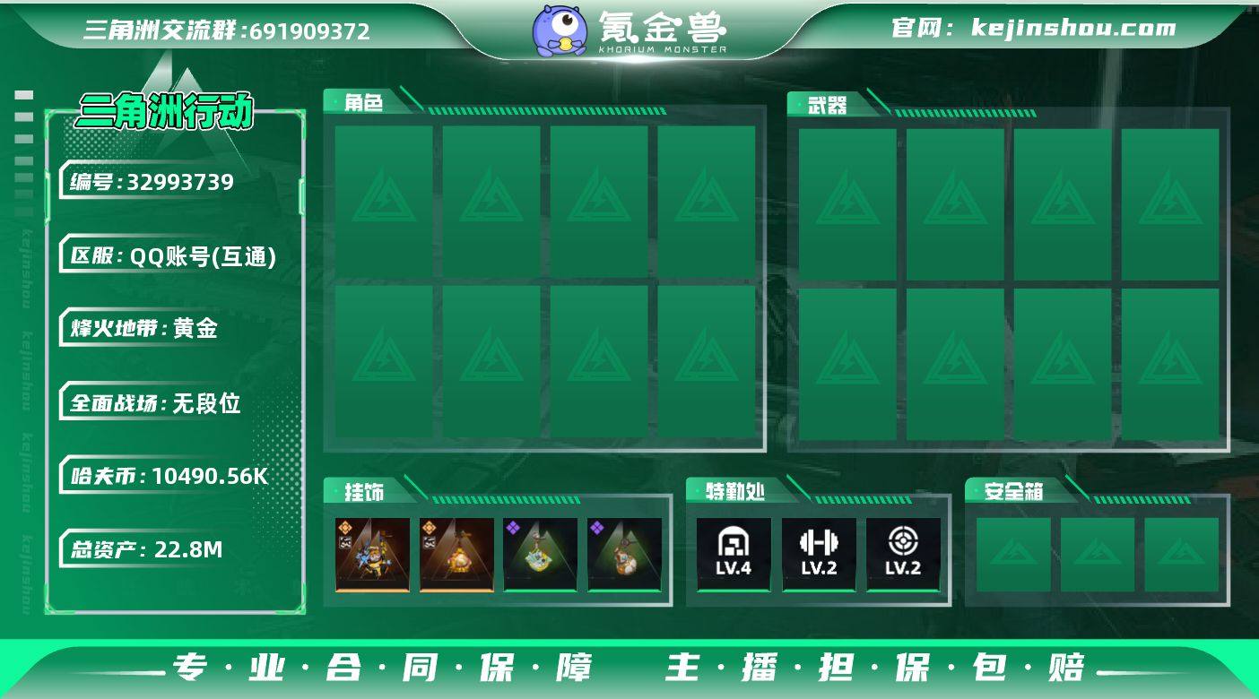 乌鲁鲁典藏挂饰,总资产27m自己打的小号34级,4级仓库2级体力,2级负重,3级指挥中心,10发AW子弹,红甲修,还有一些小红,纯币1000万3*3保险5
