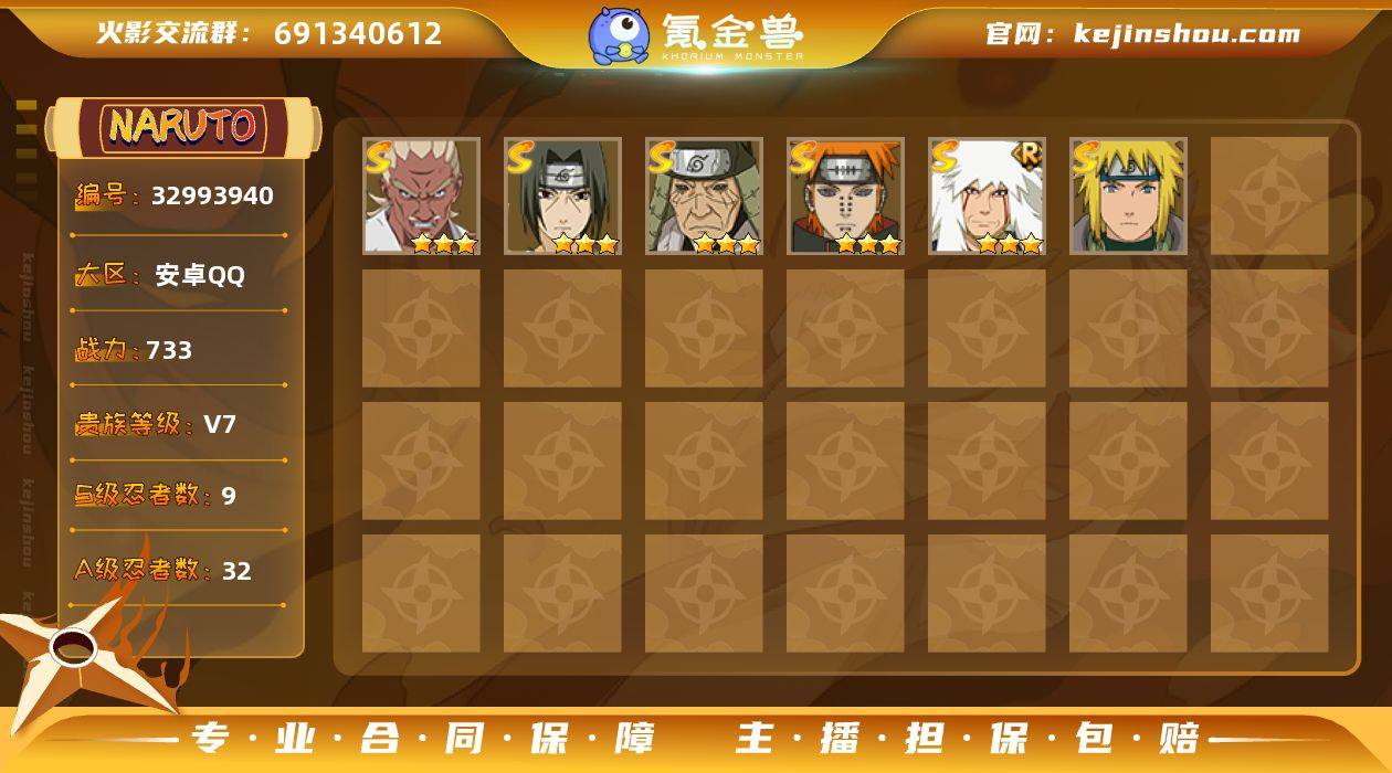 [18042429]V7 9S忍 32A忍 15通灵 733.3W战力 可二次 可修改实名 【S级忍者】艾「忍界大战」,自来也 「舞之豪杰」,大筒木舍人 「最终章」,漩涡鸣人·宇智波佐助,宇智波带土「十尾人柱力」,猿飞日斩「秽土转生」,宇智波鼬 「须佐能乎」,佩恩「天道」,波风水门