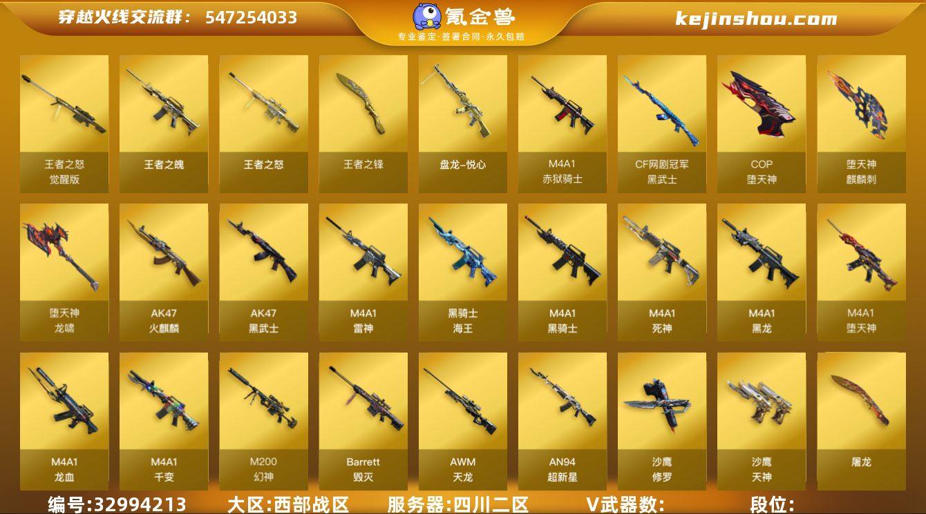 zx1889【幻神COP堕天神】【四川二区】【可二次实名】【可排位】【传奇4】【CF点29】【V武器数77】【死亡之眼】【堕天神套装X6套】【堕天神套装X6套】【M200-幻神】【M4A1-堕天神】【COP-堕天神】【魂·炼狱-玩具枪】【死亡之眼】【葵】【迷迭香】【樱】【M4A1-雷神】【M4A1-雷神-白鲨皮肤】【雷神-赛博朋克】【雷神-暗月】【AK47-火麒麟】【火麒麟-战神关羽】【M4A1-黑骑士】【黑骑士耀金皮肤】【黑骑士-摸金校尉】【M4A1-黑骑士音效卡】【M4A1-黑龙】【黑龙-能量核心】【黑龙-暗月】【Barrett-毁灭】【毁灭-暗月】